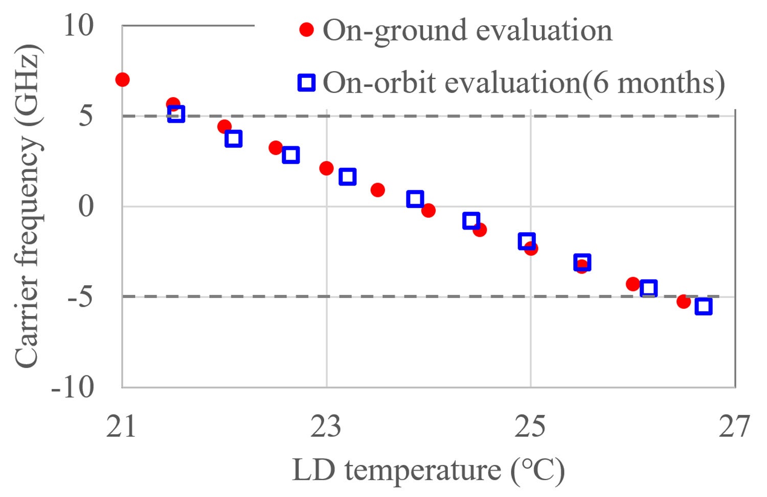 ・衛星間でレーザー光線による通信を行う場合、人工衛星はそれぞれの速度で動くためドップラー効果(レーザー光周波数の変化)が発生。特に速度差が大きい低軌道衛星-静止衛星間の中継通信においては、ドップラー効果の影響を低減するレーザー光周波数の補正が必須となるため、宇宙空間環境下で安定動作する部品選定や基板設計などのノウハウを基に、放射線や熱真空の影響を抑えた実証用光源モジュールを開発。これにより、民生部品を活用した光源モジュールにおいて、ドップラー補正に必要なレーザー光周波数変化量が地上評価時と比べて劣化しないことを世界で初めて実証