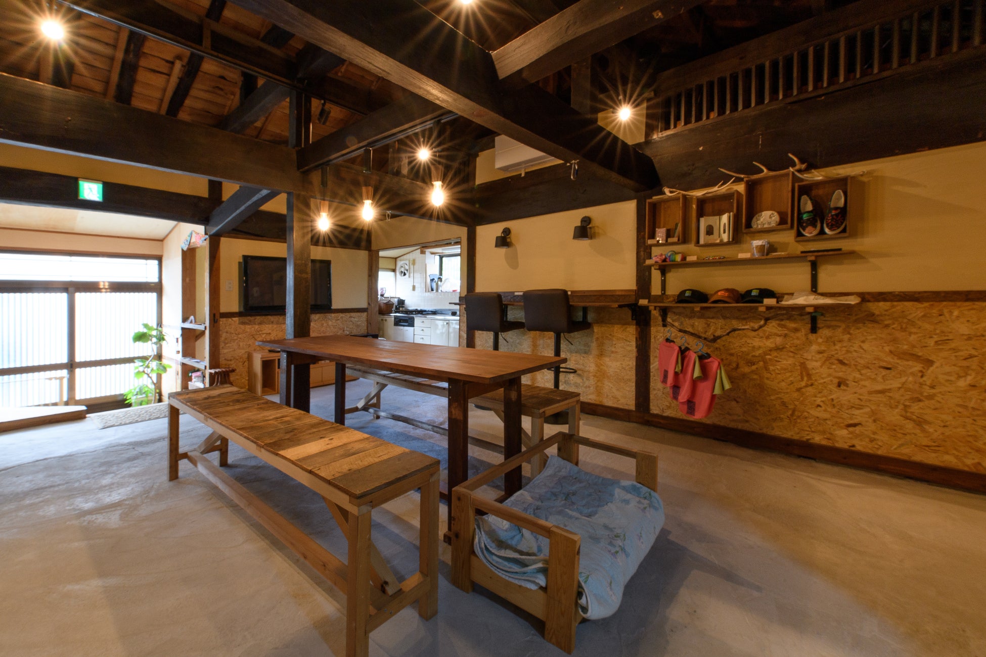 古民家をリノベーションしており、共同キッチン・調理器具・調味料なども完備。自由に食事を作ったり、イベントやワークショップも開催可能です。