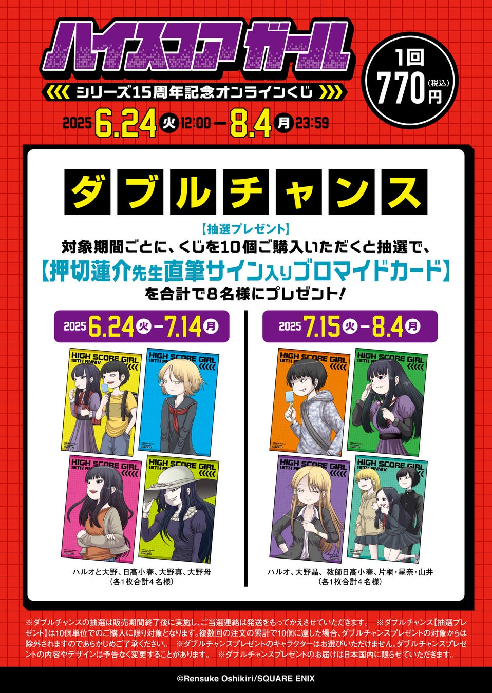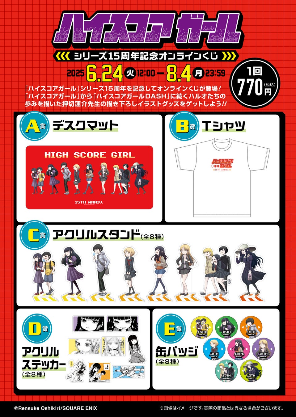 本日2025年6月24日正午より、スクウェア・エニックス e-STOREにて「ハイスコアガール」オンラインくじの予約受付を開始いたしました。