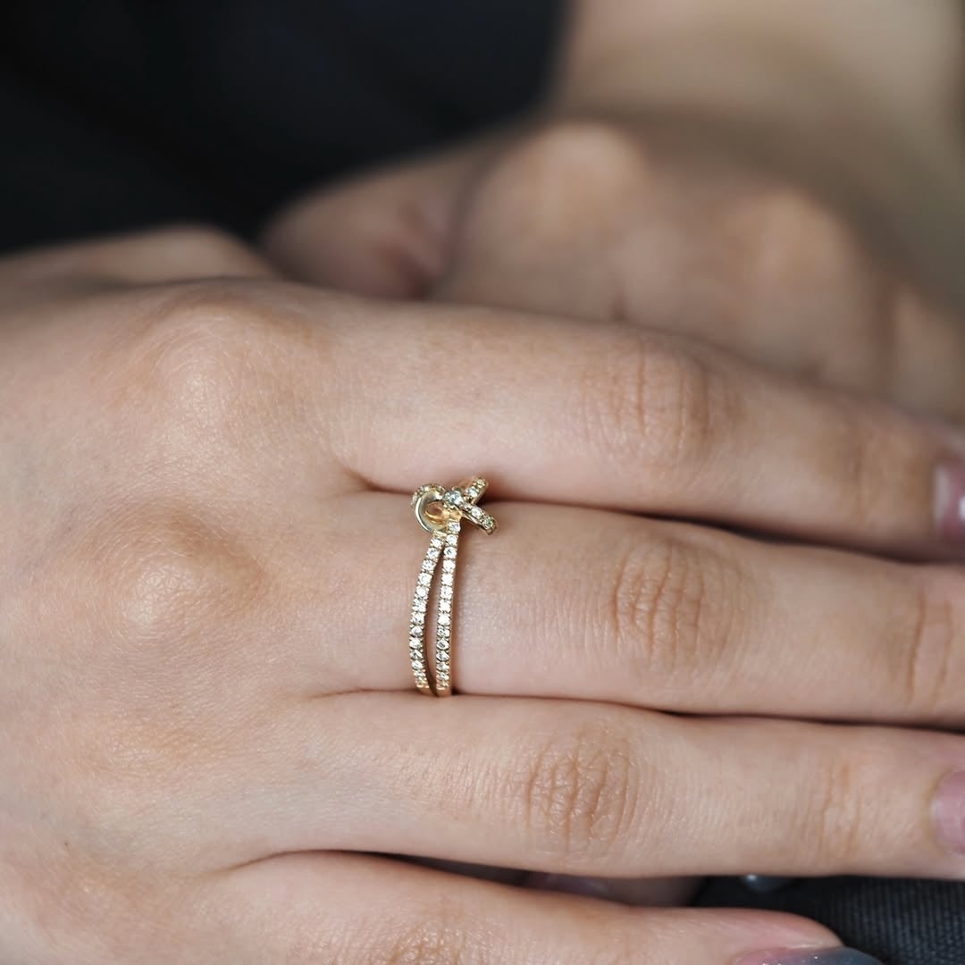 ツタのように繊細なラインがめぐるフルエタニティタイプや、艶やかな地金が映えるサムリングにもおすすめのフォルムなど、どのデザインにも自然のモチーフを宿した個性が光ります。シリーズ内での重ねづけはもちろん、「ポンポネ」や「ミルシェノン」など他のコレクションとの組み合わせもおすすめです。サイズは11・13・15号をご用意しており、すべて上下2号のサイズ調整に対応しています。