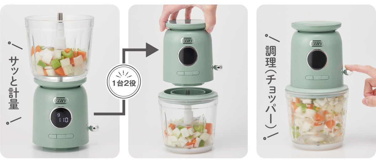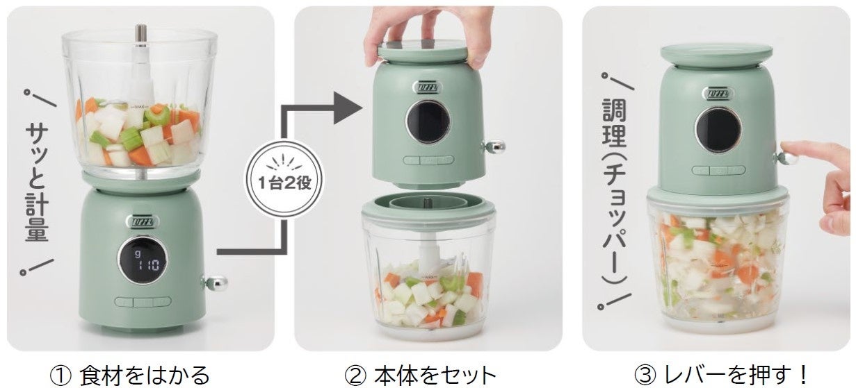 サッとはかって下ごしらえ!スケール機能が付いたフードプロセッサー「Toffy スケール付きマルチフードプロセッサー<充電式>」発売