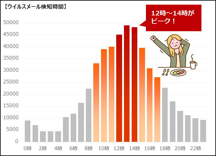 - ランチタイムが狙われやすい?ウイルス検知時間最多は『12時から14時』がピーク