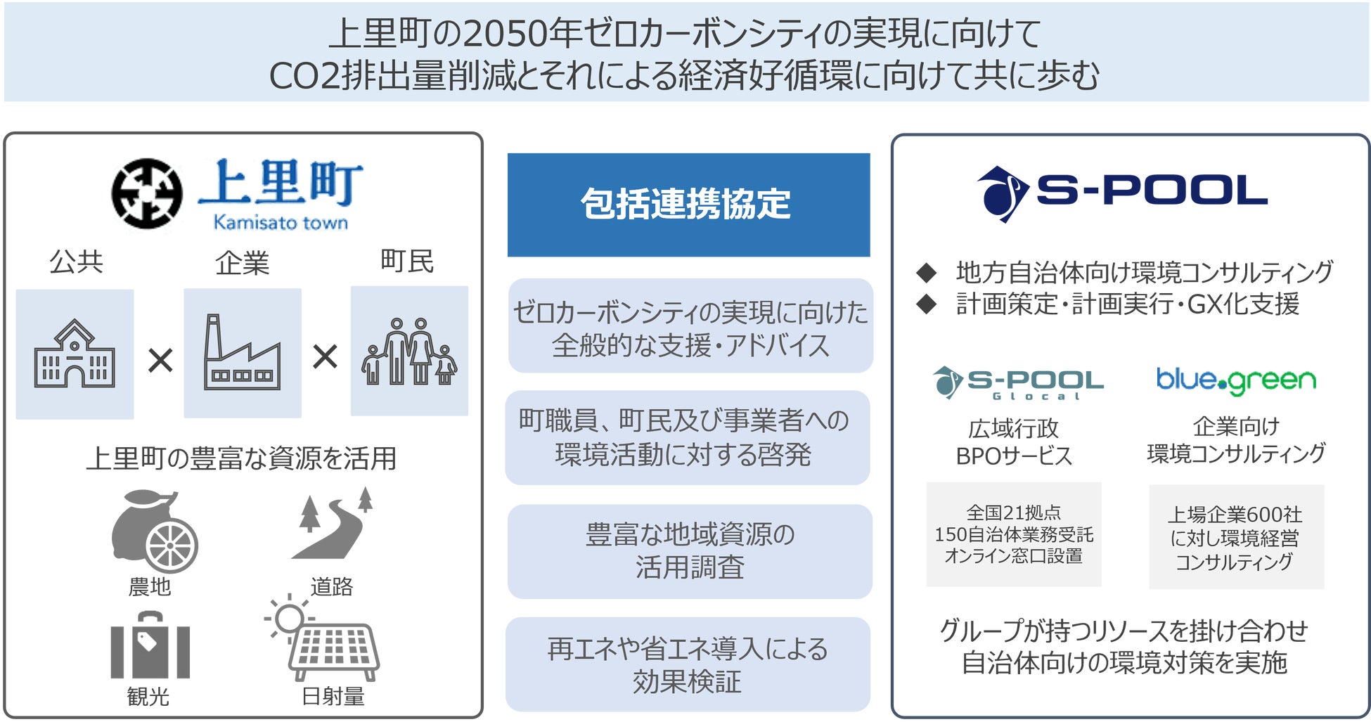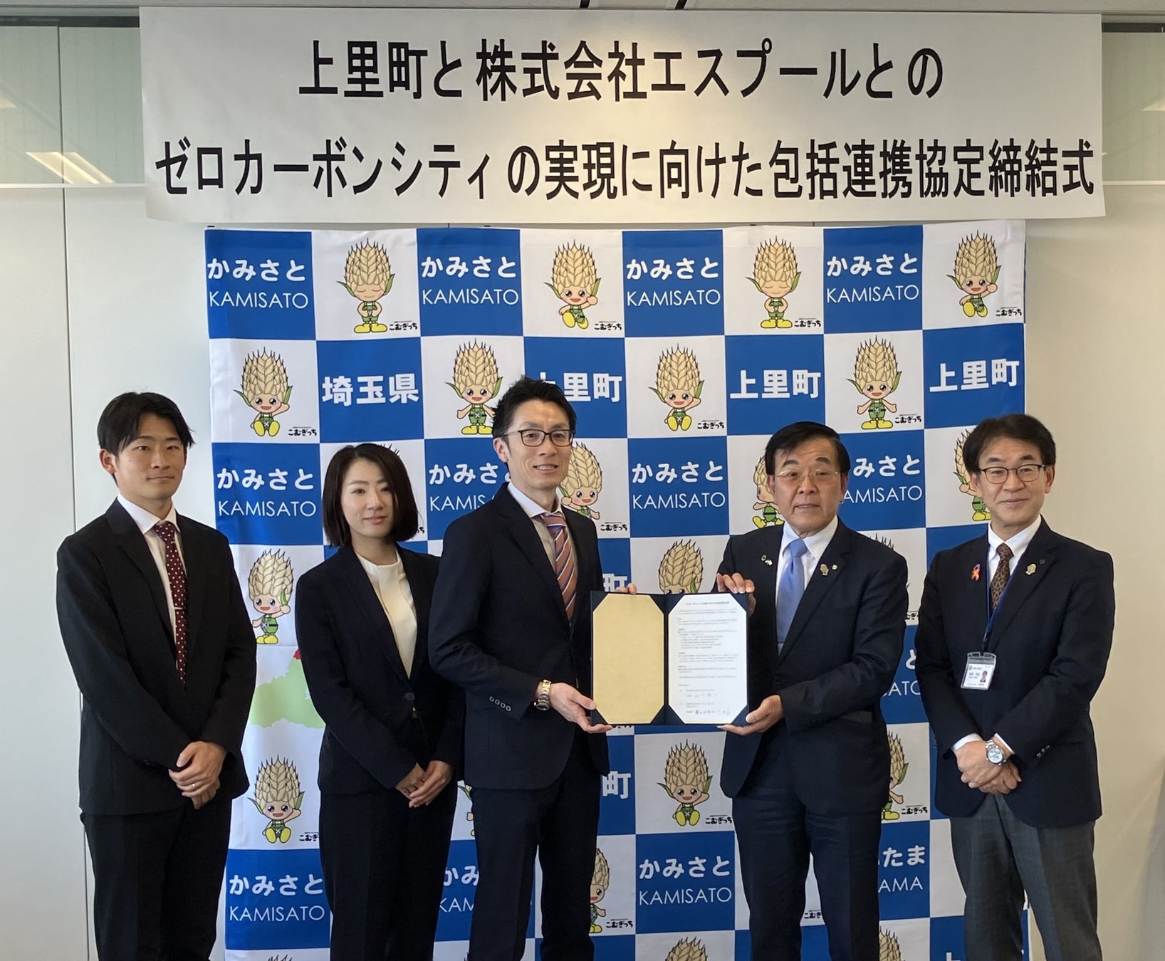 株式会社エスプール(本社:東京都千代田区/代表取締役会長兼社長:浦上 壮平/以下、「当社」)は、本日、埼玉県児玉郡上里町(町長:山下 博一)と連携協定を締結し、同町のカーボンニュートラル実現に 向けた取り組みを開始することとなりました。