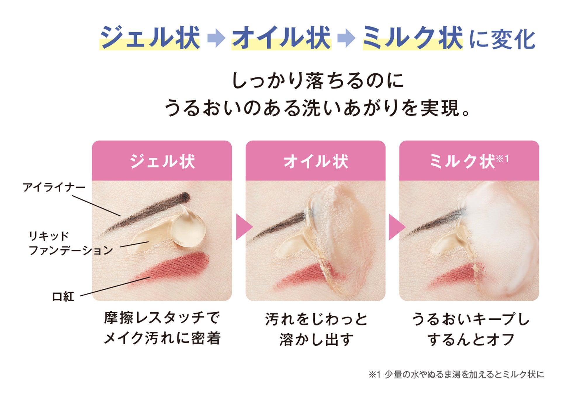 Point1 ジェル状・オイル状・ミルク状の三変化でしっかり“うる落ち”