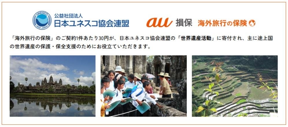 なお、当社の海外旅行の保険にご加入の場合、ご契約1件あたり30円を日本ユネスコ協会連盟の「世界遺産活動」に寄付します。