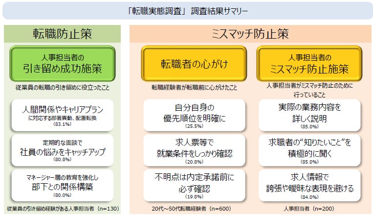 人事担当者が従業員の転職防止に役立ったこと「人間関係やキャリアプランへの対応」が約8割