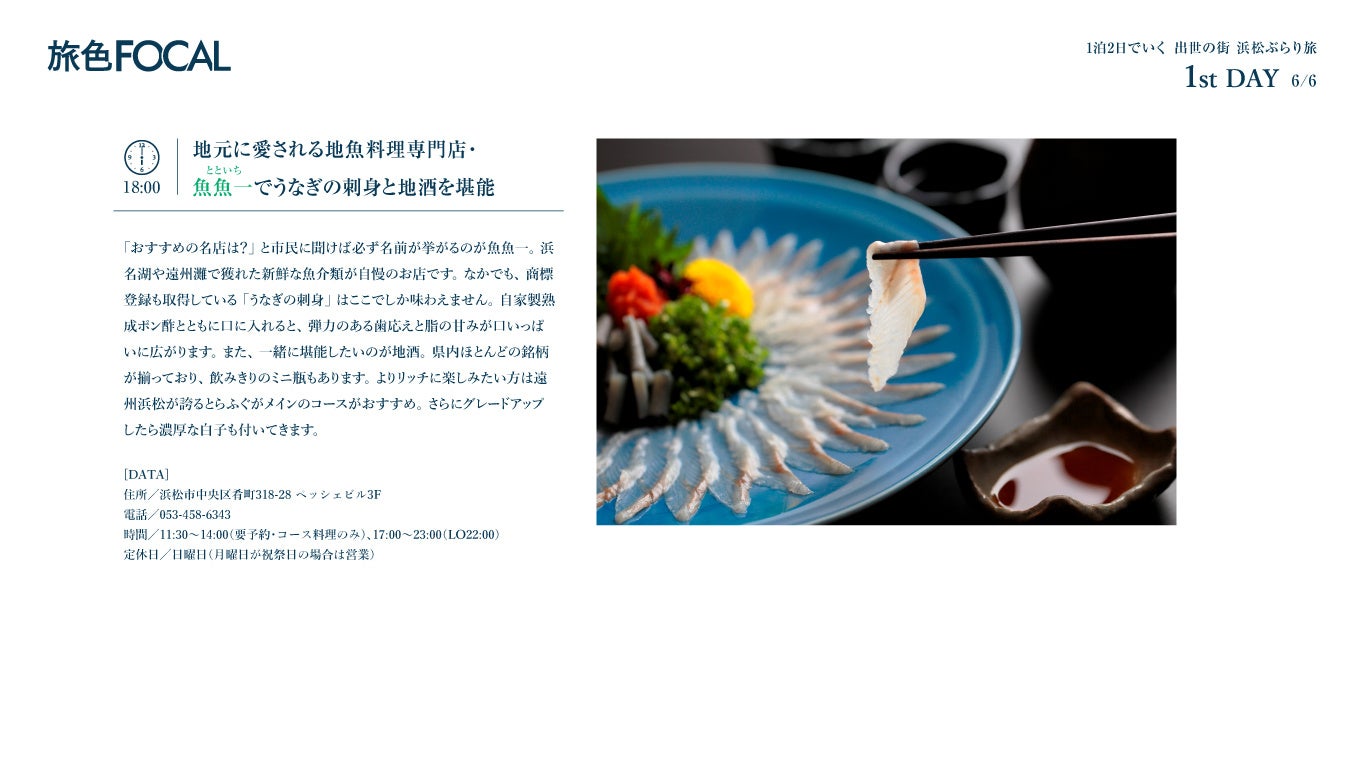 電子雑誌「旅色」は、静岡県 浜松市と提携し、ローカル旅の魅力を発掘する「旅色FOCAL」静岡県 浜松市特集を公開しました。