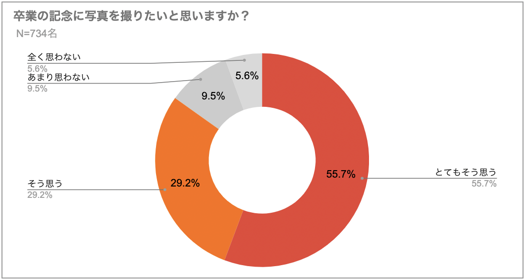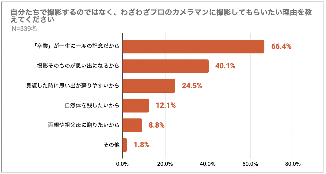 理由は、「卒業が一生に一度の記念だから」(66.4%)に次いで「撮影そのものが思い出になるから」(40.1%)という結果になりました。