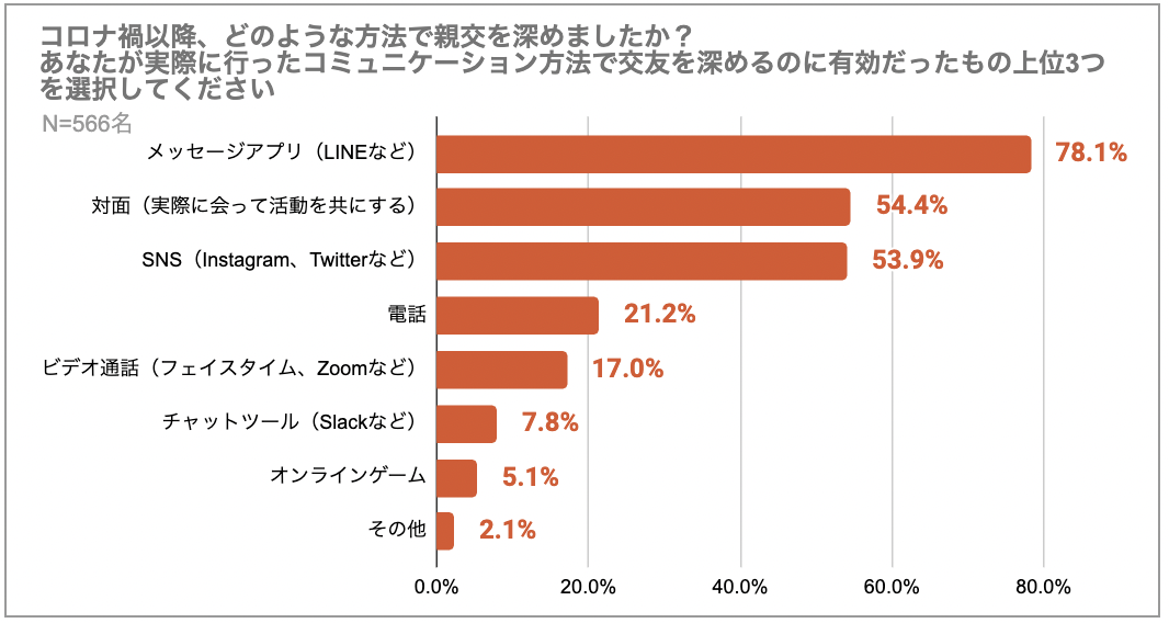 - コロナ禍で友人たちの親交、思い出づくりに不足感
