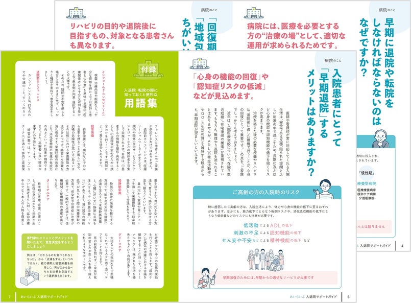 概要: ご高齢の患者さんの「⼊院」から「退院後の生活」までのことがよくわかる、⼊退院⽀援担当者のためのサポートガイドブック