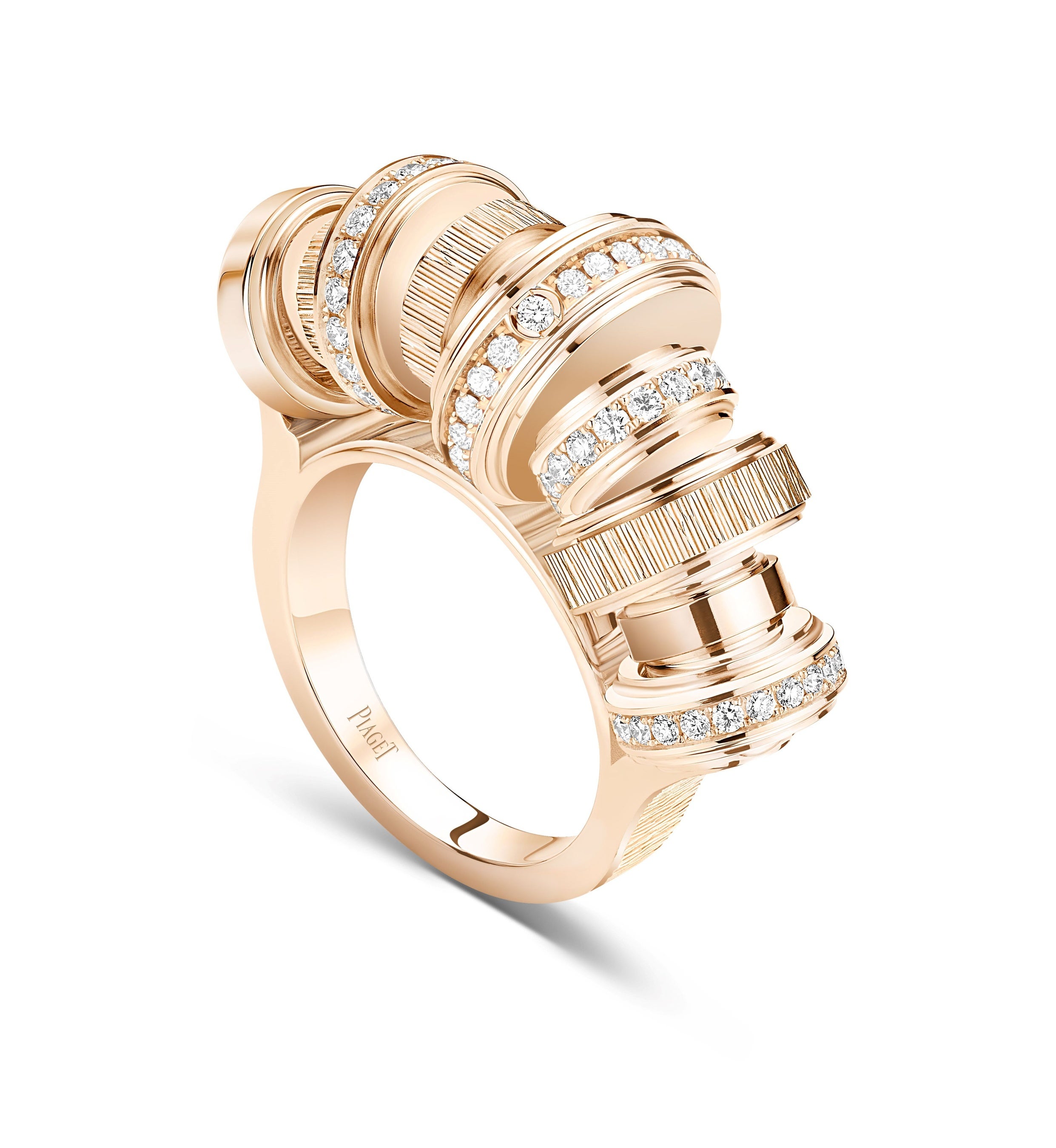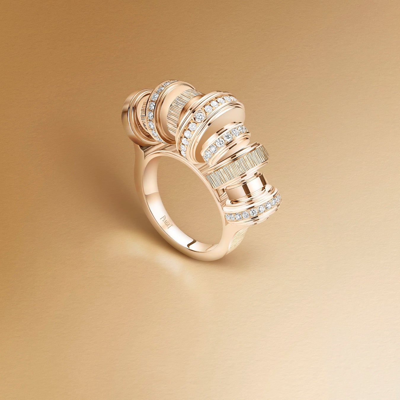 幅や深さの異なる極細い線を彫り入れることによって奥行のある輝きを出すデコ パレス(Decor Palace – パレス装飾)、円形の溝でダイヤモンドを留めるユニークなポセッション セッティング、滑らかに回る回転リング、繊細でありながら存在感を放つペンダントのチェーンなど、「ハウス・オブ・ゴールド」の名にふさわしいアイテムが揃います。