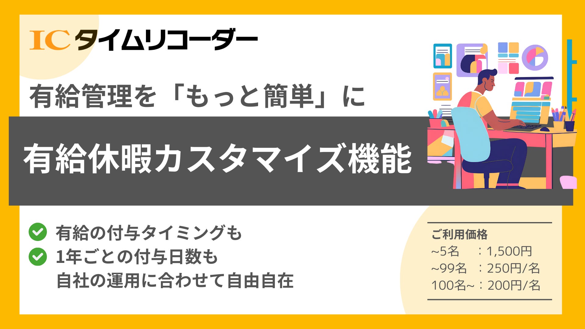 労務担当者には必須!クラウド型勤怠管理システム:IC勤怠に年次有給の付与管理機能を新たに追加。会社ごとに違う年次有給休暇の運用に対応。