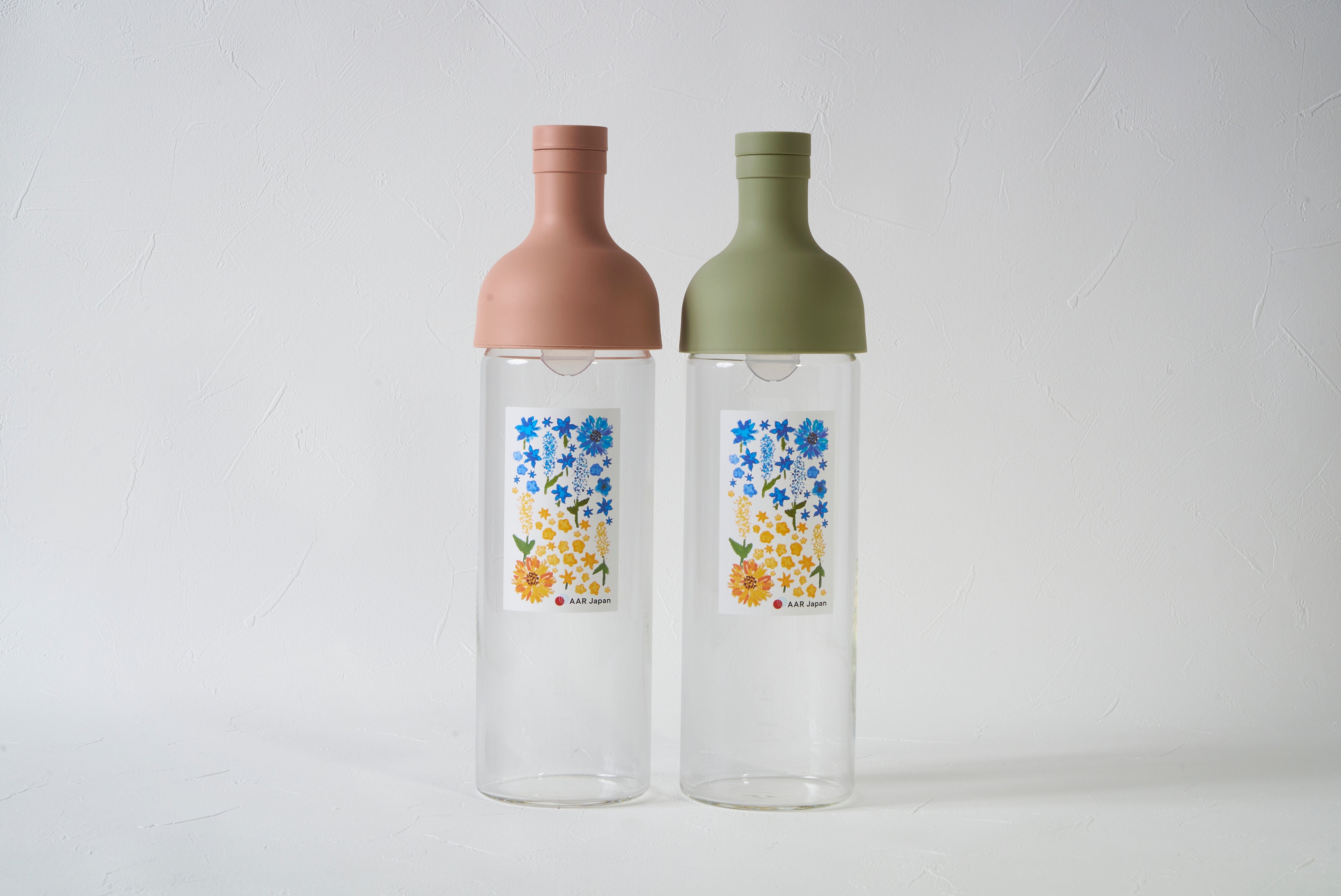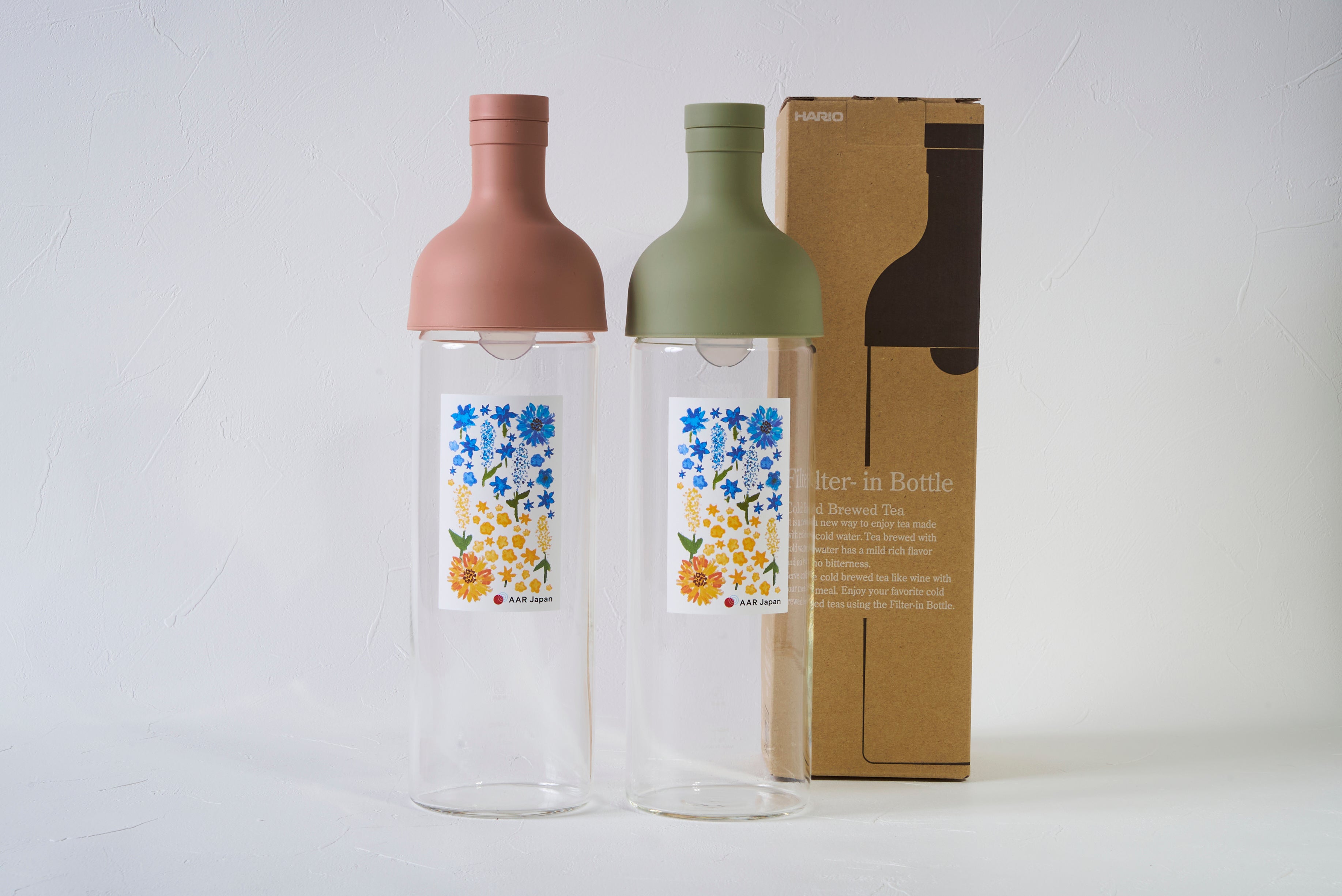 AARでは、難民問題などに関心を持っていただくきっかけとして、チャリティグッズの販売を行っています。このたび、HARIOの人気商品「フィルターインボトル」がAARのチャリティグッズに仲間入りします。