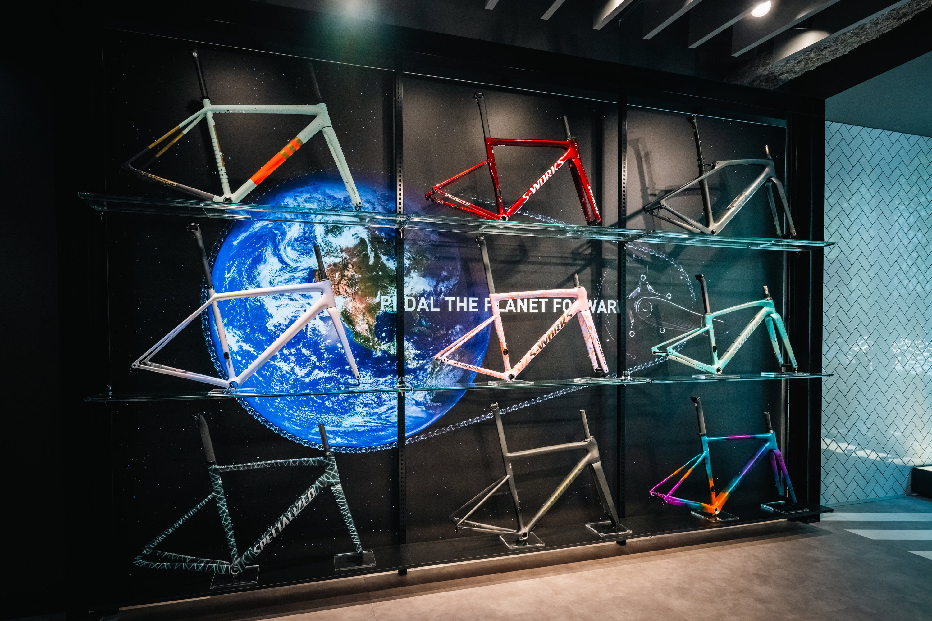 常に最先端のバイクを発信してきた同店は、コロナ渦以降のサイクリングシーンの変化に合わせ2024年春にリニューアルしました。人気のロードバイクユーザーや国内外の旅行客にスペシャライズドの革新性を体験していただくため、同社の中でも最新の技術がより多く詰まった最高峰グレードS-Worksを中心とした展示に生まれ変わりました。1974年に設立されたスペシャライズドは今年で50周年。ショッピングのみならず、同社のこれまでの道程と、これからのサイクリングシーンを発信していく拠点となります。