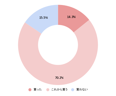 11月末時点では「これから購入する」という回答が最も多く、約7割を占めています。既に購入したのは1割強と、事前準備にぬかりのない人も。購入しないという割合も1割強ですが、大半がクリスマスギフトを準備していることがわかります。