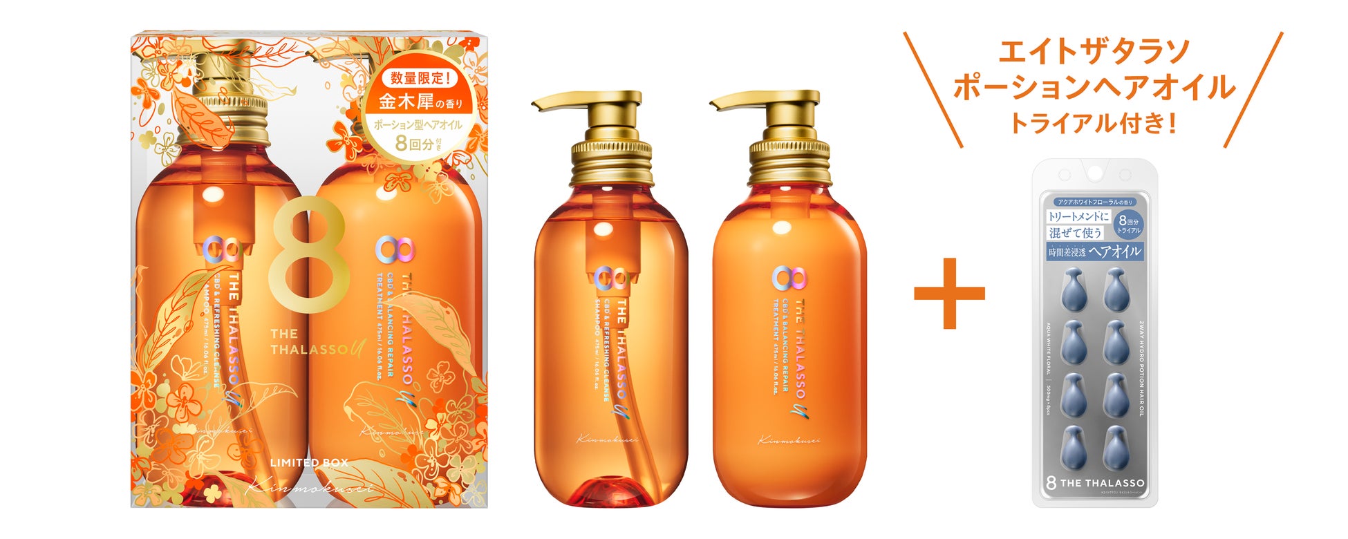 ステラシード株式会社は、スキンケア発想の保水美容液ヘアケアブランド「8 THE THALASSO(以下、エイトザタラソ)」、シェアードライン「8 THE THALASSO u(以下、エイトザタラソ ユー)」より、「金木犀の香り」のアイテムを数量限定で発売いたします。