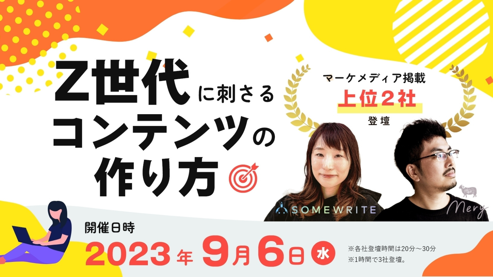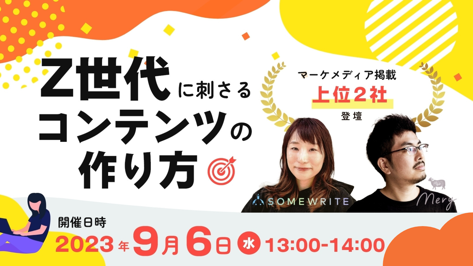 今回のセミナーでは、ホワイトペーパーダウンロードサイト「マーケメディア」におけるダウンロード上位2社であるサムライトとMERY社が、Z世代に響くコンテンツの作り方をテーマに、より多くのダウンロードを獲得するための方法とコンテンツ作成のポイント、注目サービスの生み出し方について徹底解説いたします。