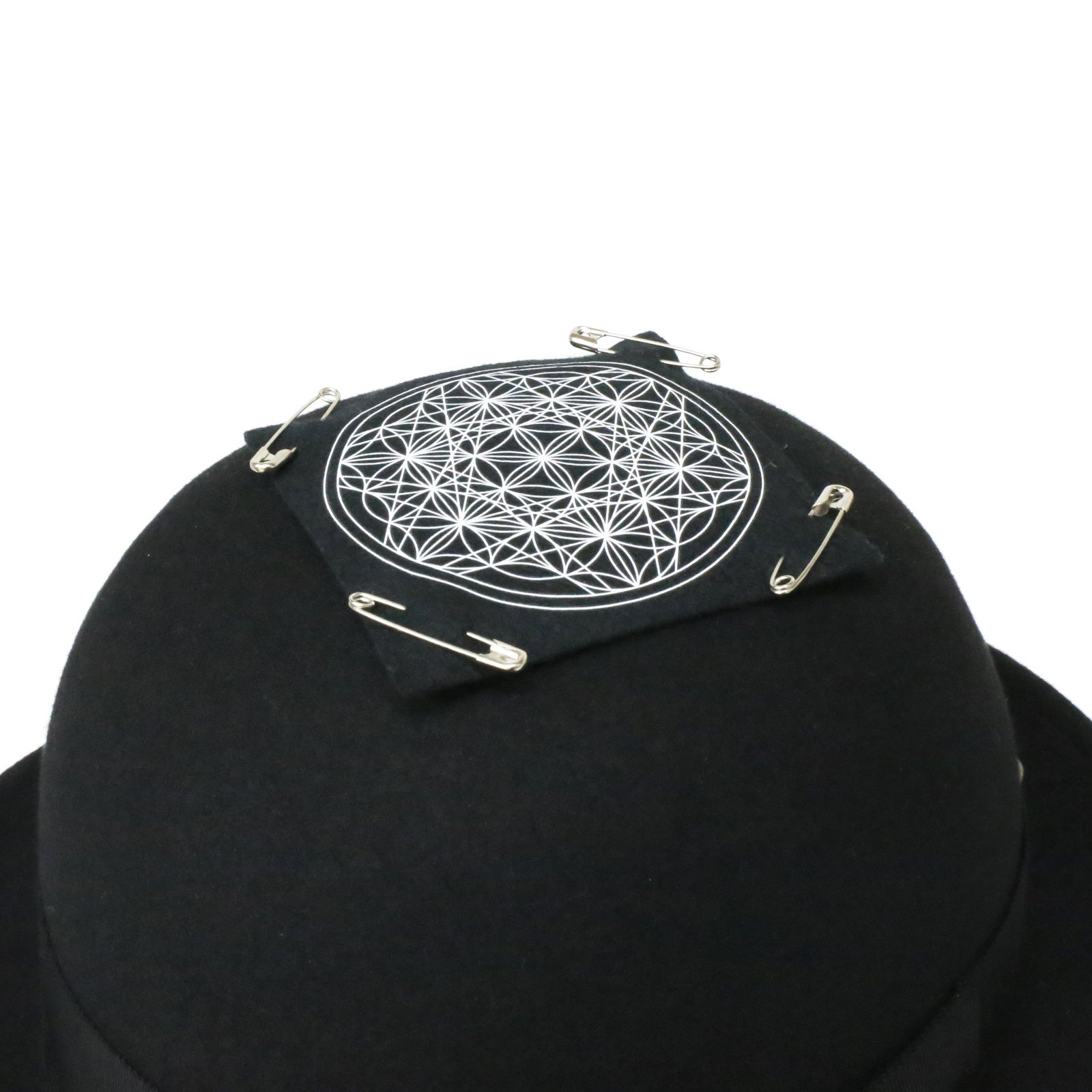 ハットにはさらに、神聖幾何学模様がプリントされた安全ピン付きのワッペンも付属されます。パンクの精神を持ちながら、パワーが欲しい箇所に取り付けてみると、いいことがあるかもしれません。