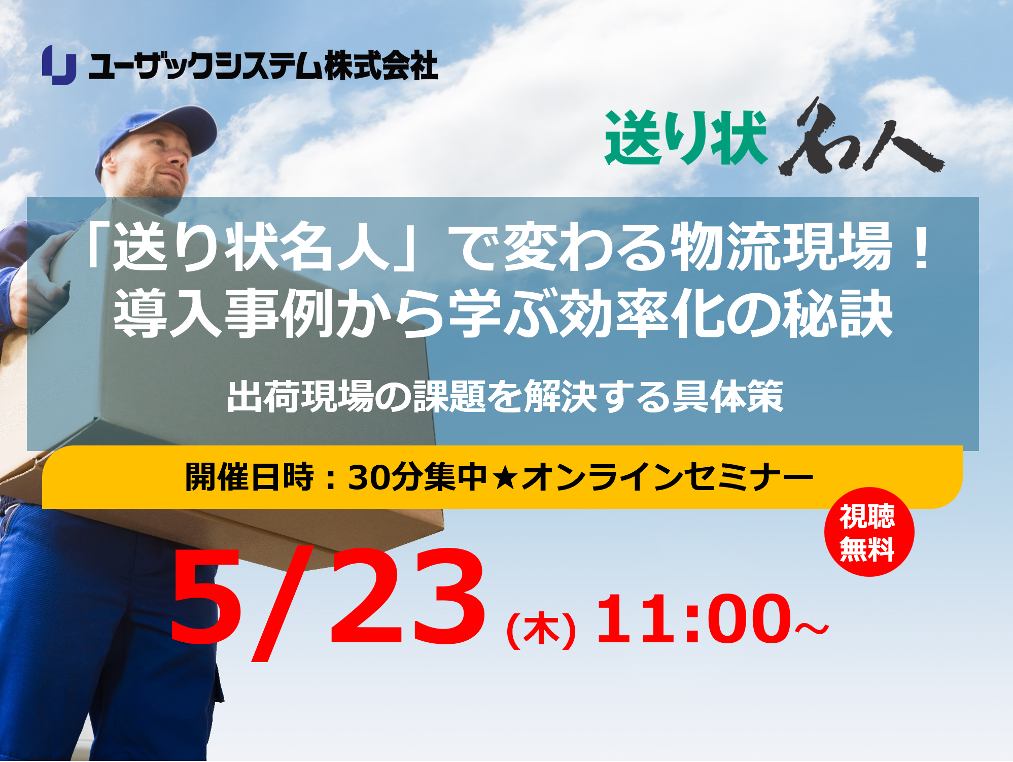 【5/23(木)11:00~開催】「送り状名人」で変わる物流現場!導入事例から学ぶ効率化の秘訣オンラインセミナー