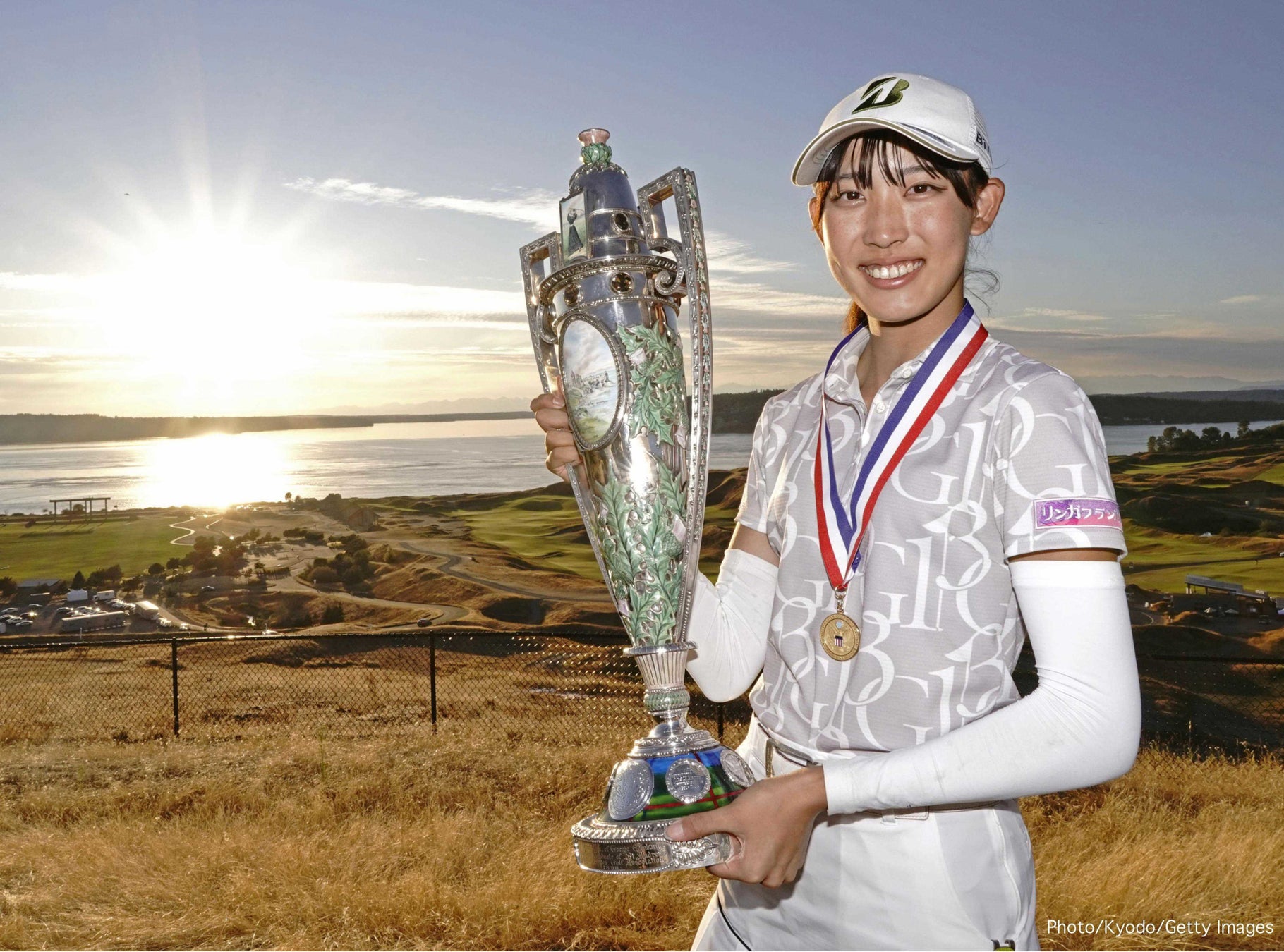 「初めての全米女子アマチュア選手権でしたが、優勝できてとても嬉しいです。ラウンド中はずっと勝てる、 勝てると思いながら、自信を持って強気のゴルフができました。日本のゴルフ場では経験できないようなリンクスコースでグリーンも驚くほどの傾斜のなか、ブリヂストンのボール・クラブのおかげで、高い弾道でピンを狙う スピンの効いた球を打てたことが勝利につながったと思います。来年の海外メジャーにも出場できるので、夢に向かって一歩一歩進んでいきます!今後とも応援よろしくお願いします」