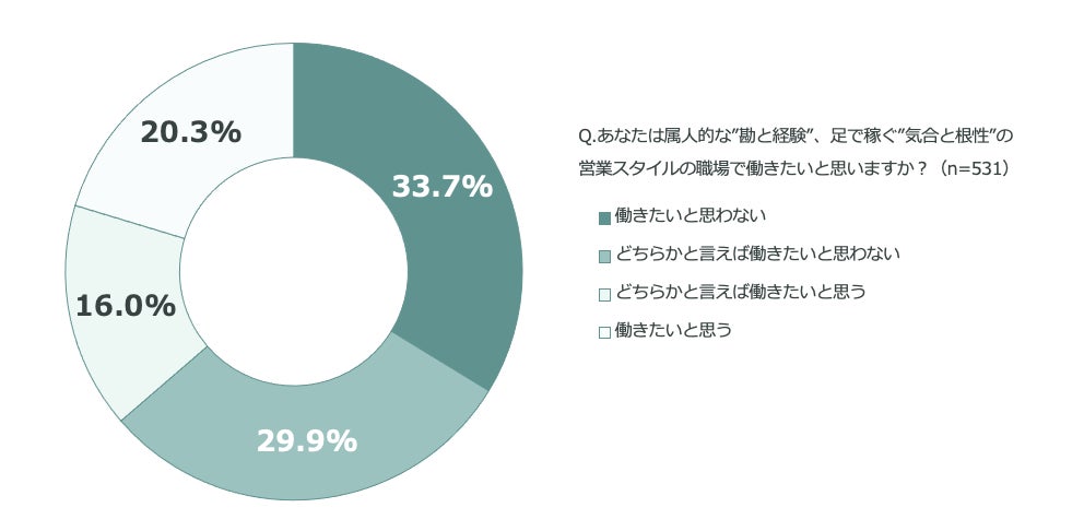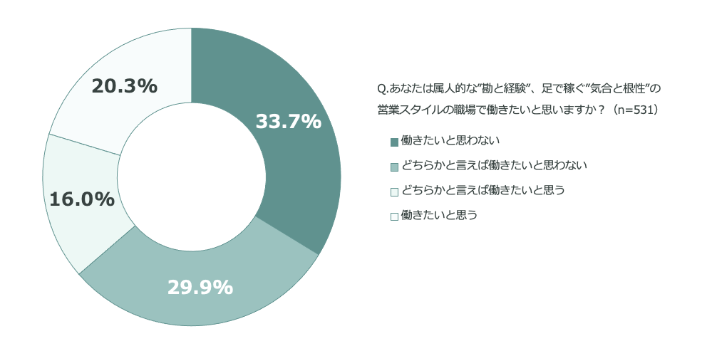 法人営業職531名のうち 42.0% は自分の職場が属人的な“勘と経験”、足で稼ぐ“気合と根性”の営業スタイル