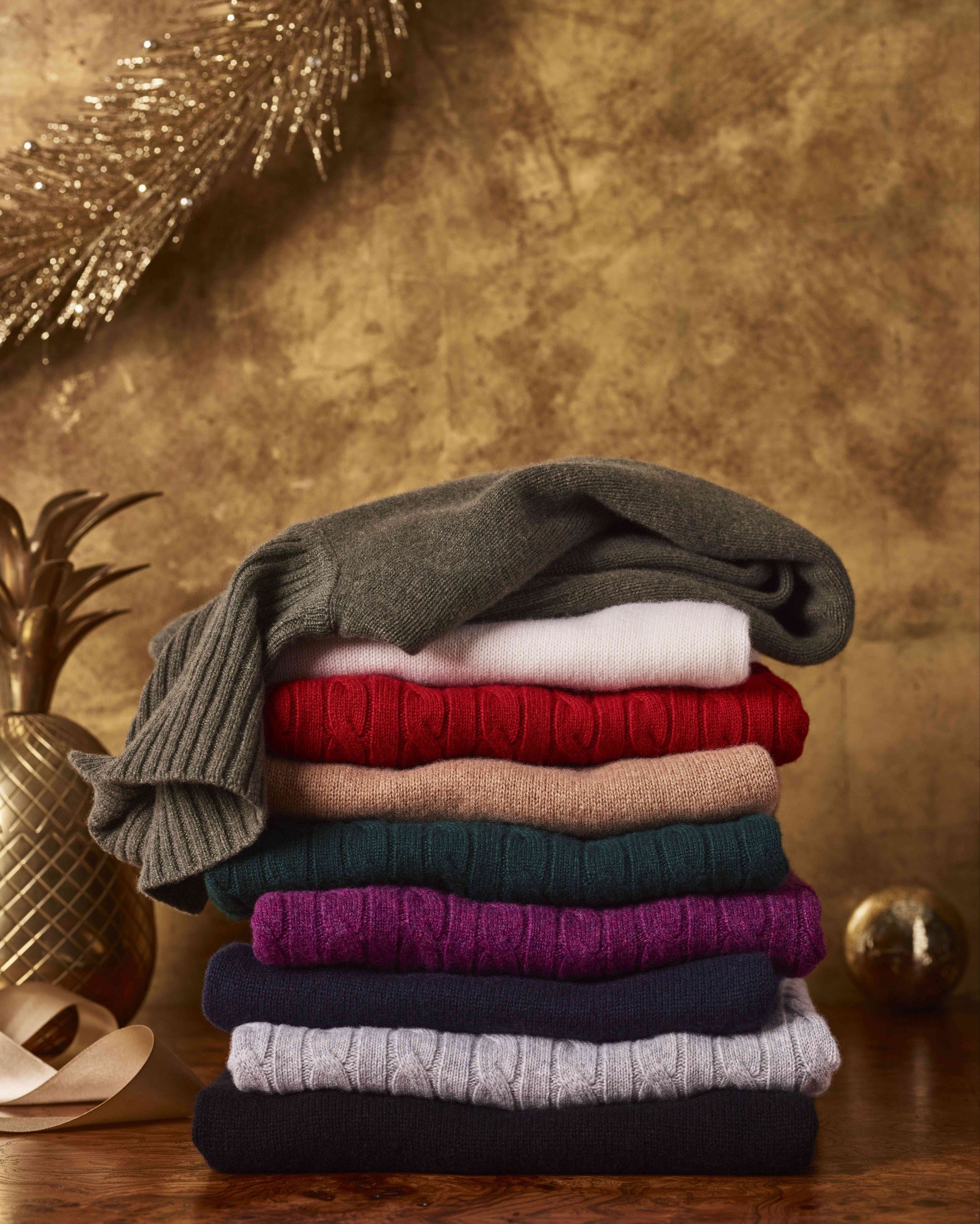 上質なカシミヤ素材のタートルネックセーターとケーブルセーターはベーシックなカラーからコーディネートのアクセントになるブライトカラーまで幅広くご用意しています。