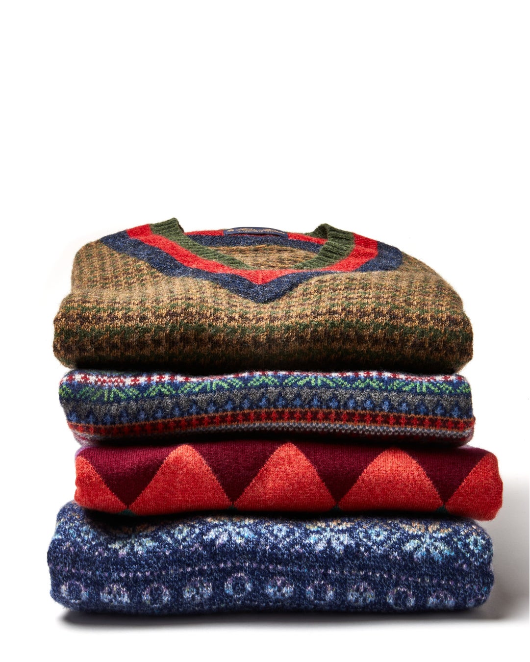 アーカイブからインスパイアされたレトロ感のあるテニスセーターや温かみのあるフェアアイル柄セーターは寒くなるこれからの季節のワードローブの必需品。