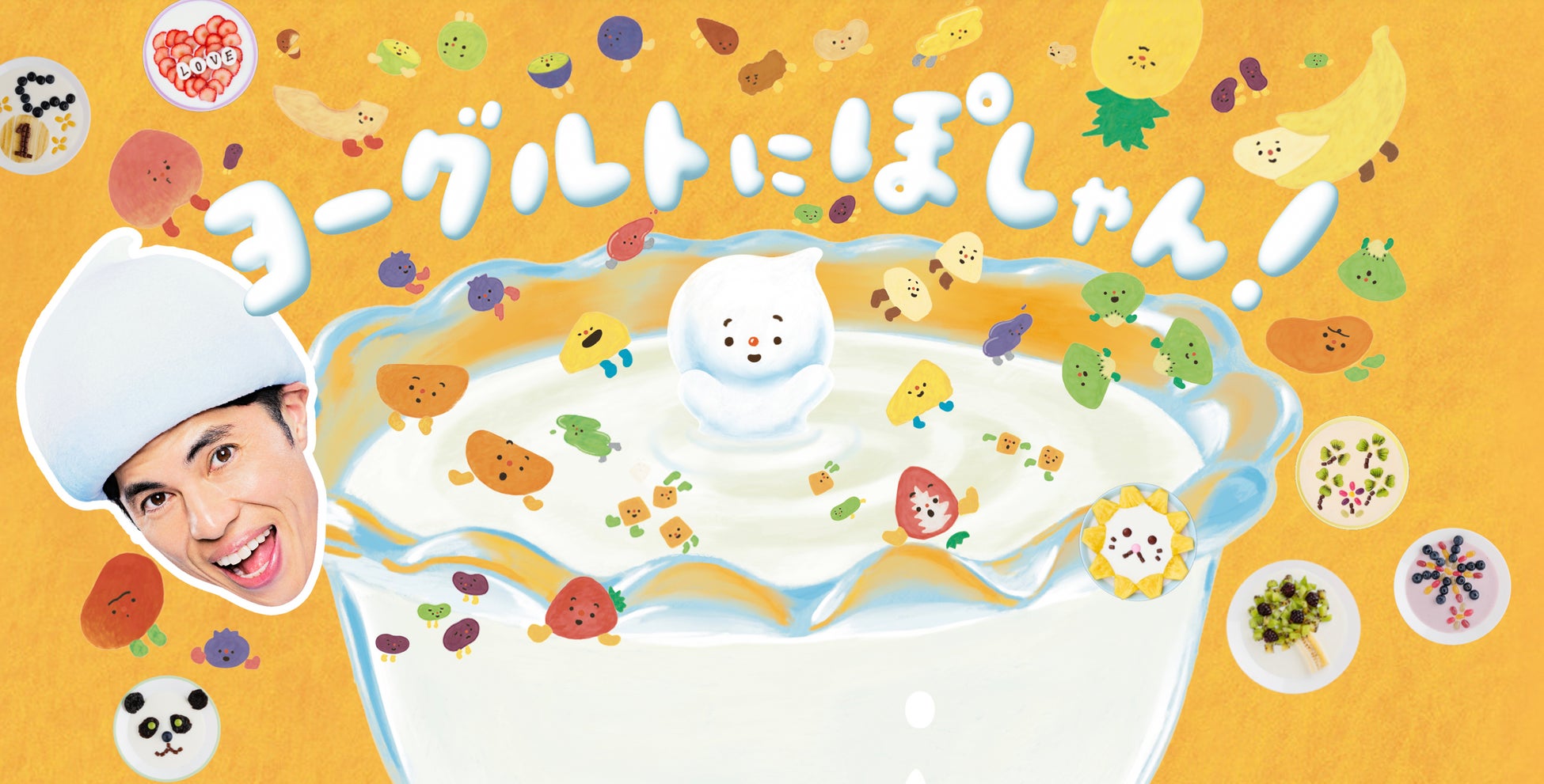 「ヨーグルトにぽしゃん!」は、ヨーグルトにフルーツやジャム・菓子などをトッピングして自由にアートをつくる「ヨーグルトアート」を、楽しくかわいい世界観の歌とダンスで表現した動画「ヨーグルトにぽしゃん!のうた」を中心に、オリジナルレシピやキャラクターなどでより気軽に楽しんでいただけるエンターテインメントコンテンツです。
