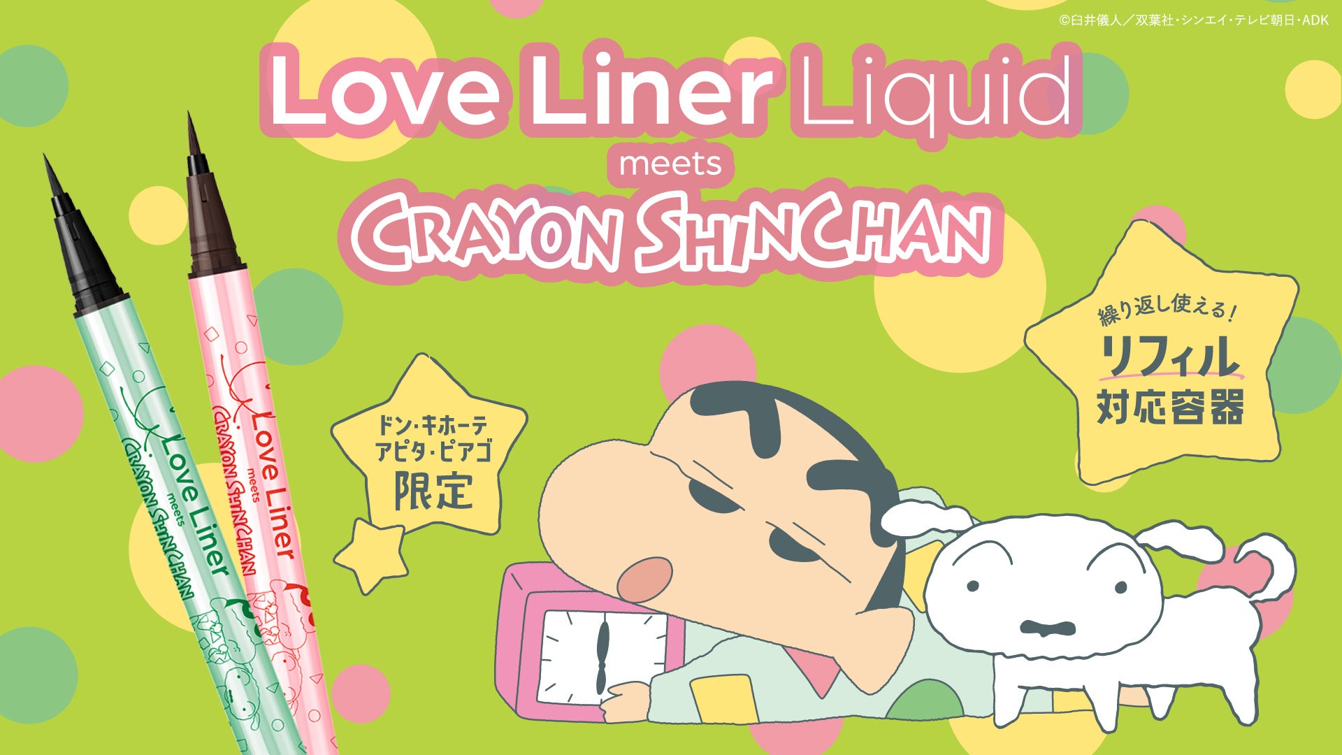 msh株式会社は、大人気アイメイクブランド「ラブ・ライナー」より、大人気アニメ『クレヨンしんちゃん』デザインのリキッドアイライナーを、ドン・キホーテ、MEGAドン・キホーテ、アピタ、ピアゴ限定で2024年9月13日(金)より順次、数量限定で発売します。