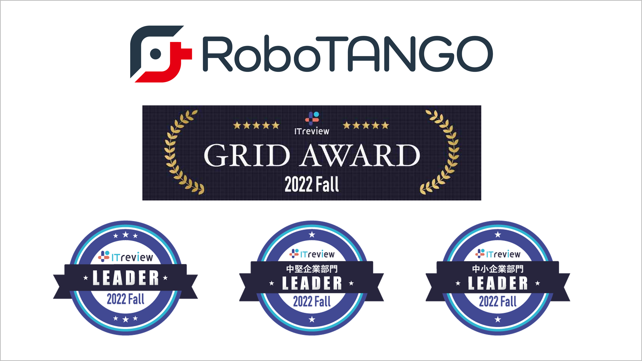 スターティアレイズ株式会社(本社:東京都、代表取締役社長:古川征且)が提供するRPAツール『RoboTANGO(ロボタンゴ)』が、アイティクラウド株式会社(本社:東京都、代表:黒野源太)が主催するアワード「ITreview Grid Award 2022 Fall」RPA部門内の総合部門、中堅企業部門、ならびに中小企業部門の3部門において、満足度と認知度の双方が優れた製品であると評価され、Leaderを春、夏、秋と3期連続受賞したことをお知らせします。
