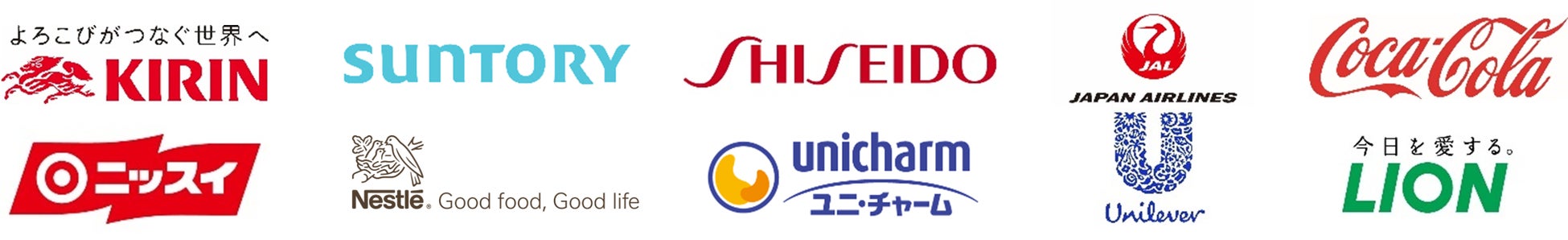 キリンホールディングス株式会社、サントリーホールディングス株式会社、株式会社資生堂、日本航空株式会社、日本コカ・コーラ株式会社、日本水産株式会社、ネスレ日本株式会社、ユニ・チャーム株式会社、ユニリーバ・ジャパン・ホールディングス合同会社、ライオン株式会社の計10社