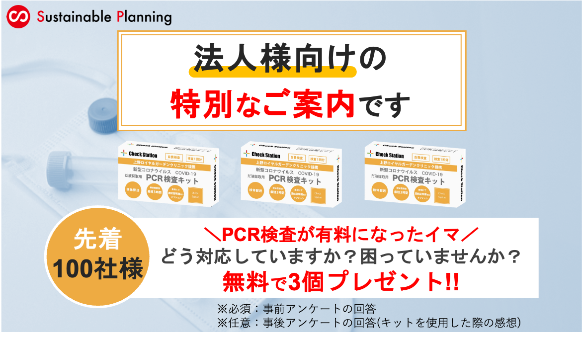 【先着100社様限定】PCR検査所が有料化になった今、PCR検査キットの使い勝手の良さを試用できるチャンス「PCR検査キットを3個プレゼント」!