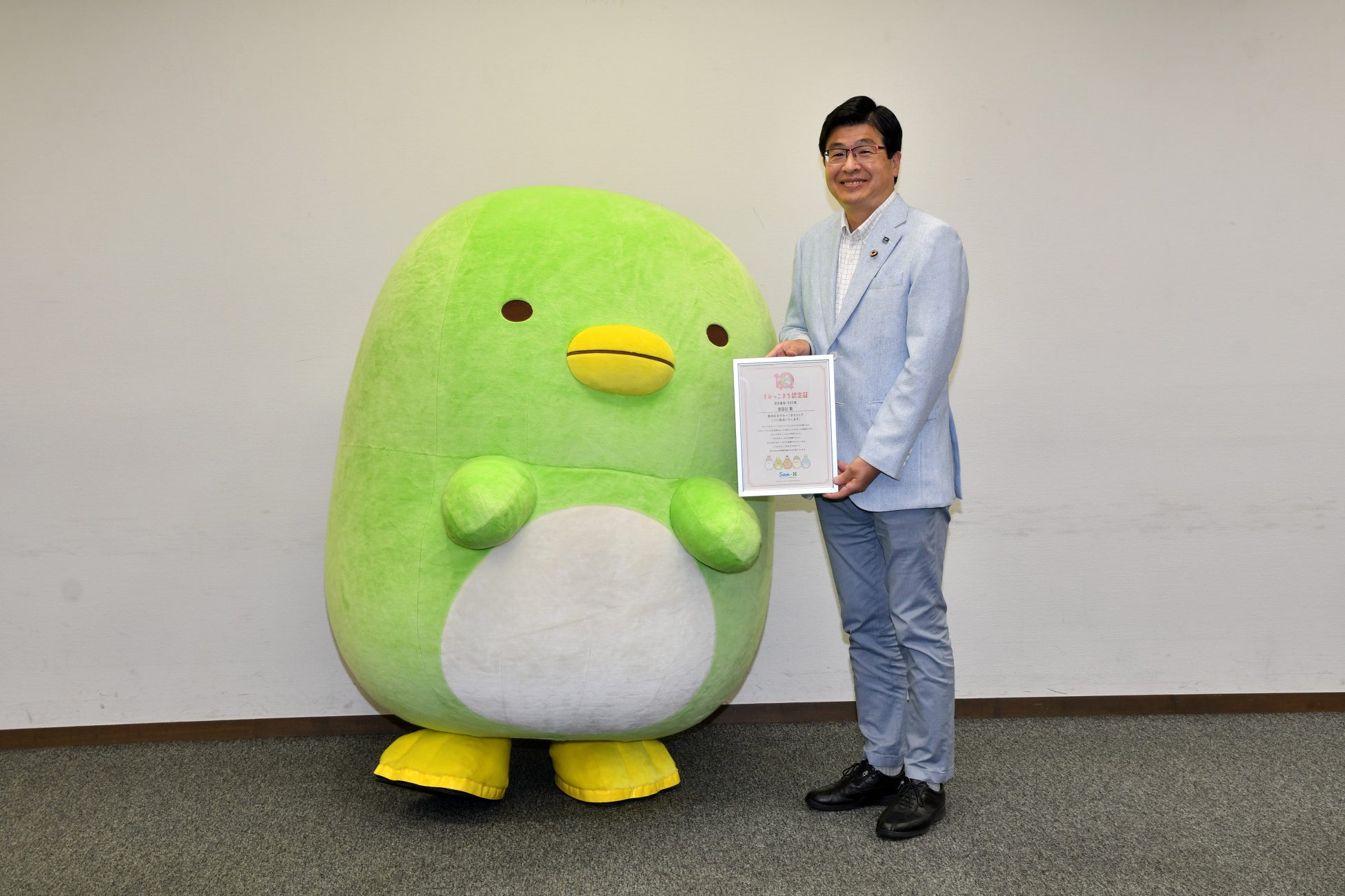 墨田区役所では、墨田区・山本亨区長、一般社団法人墨田区観光協会・森山育子理事長との認定式、記念撮影も行われ、ぺんぎん?もすみっこまちPR大使として意気込んでいる様子でした。