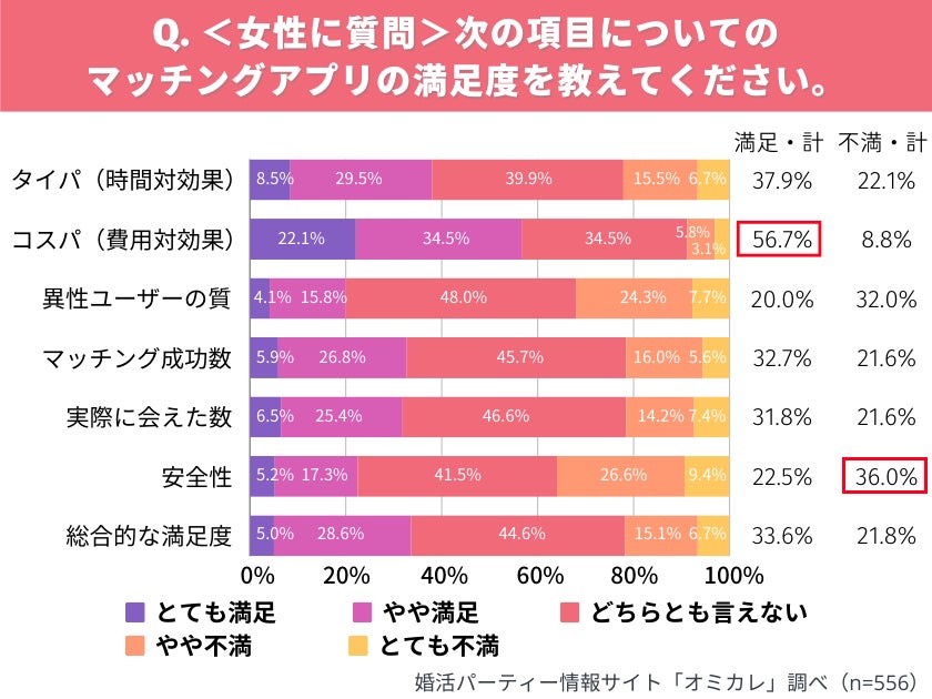 基本的にマッチングアプリは、女性の利用料金が無料のものが多く、女性は費用面での満足度が高い結果となりました。