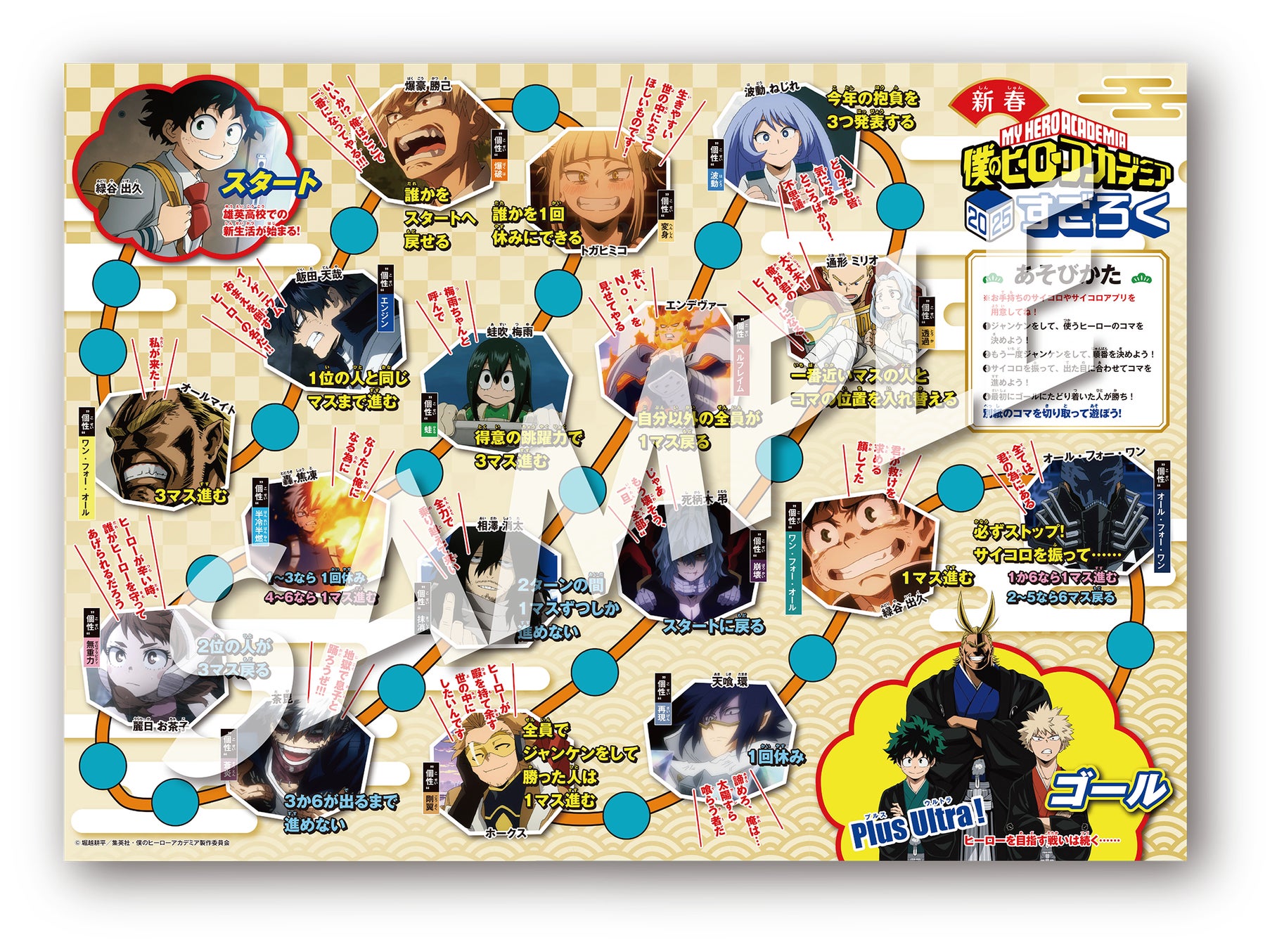 家族みんなで楽しめるヒロアカ作品の世界観を盛り込んだ、キャラクター説明付きのオリジナルすごろく。