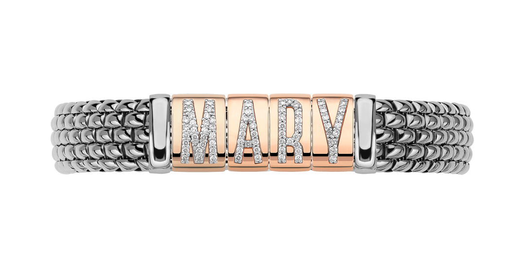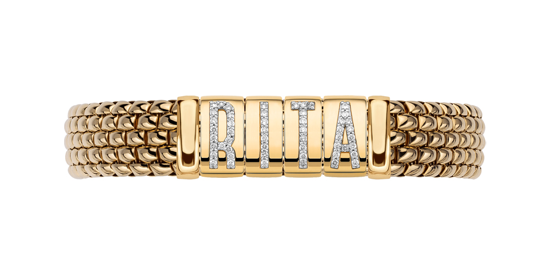 新作「PANORAMA YOU(パノラマユー)」は、好きなアルファベットを選んでリングやブレスレットをカスタマイズすることができます。イエロー、ホワイト、ローズゴールドからお好きなチェーンの色を選んだら、ダイヤモンド、またはブラックダイヤモンドを配したアルファベットのロンデルを自由に組み合わせします。