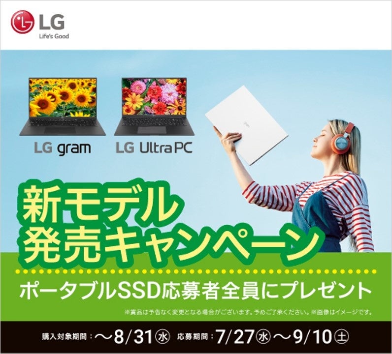 モバイルノートPC「LG gram」・「LG UltraPC」購入&応募でポータブルSSDをプレゼント!『新モデル発売キャンペーン』を9月10日(土)まで実施