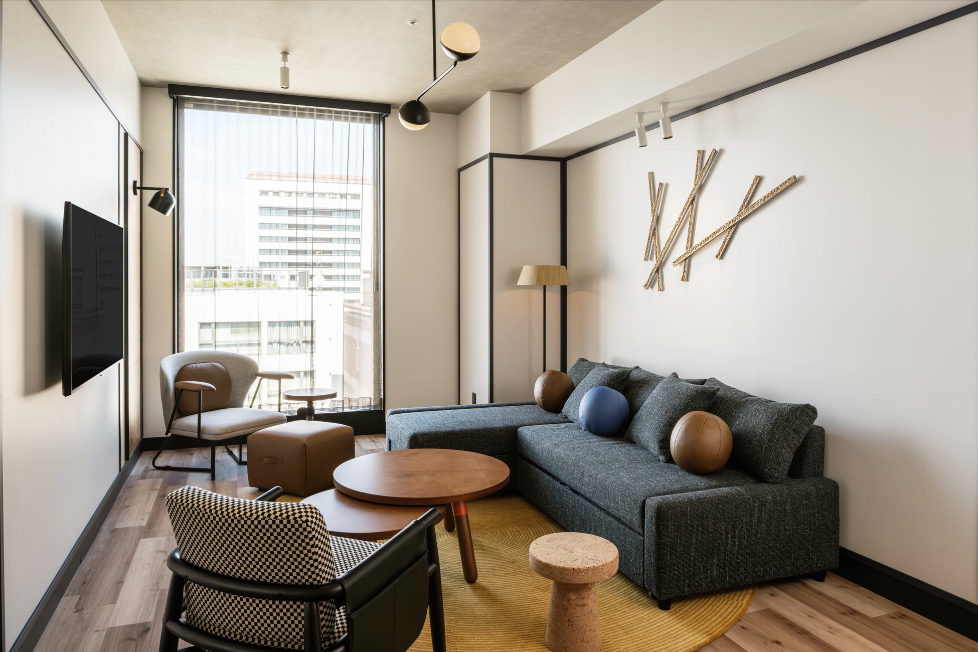 全195室の客室は、機能性と遊び心を兼ね備え、アートを通じて兜町の魅力を表現。旅人とローカルが自然に交わる“まちのリビングルーム”のような存在を目指し、ホテルの中心には誰もが気軽に立ち寄れるソーシャルハブ「Talk Shop(トークショップ)」を設けています。バーガーやクラフトビールを片手に、定期的に開催されるイベントに参加したり、偶然の出会いを楽しんだり。日本橋兜町という街の魅力を、あなたらしいスタイルで体感してみてください。