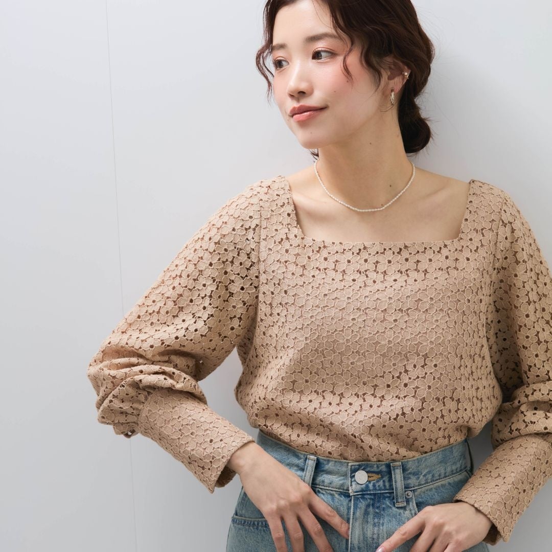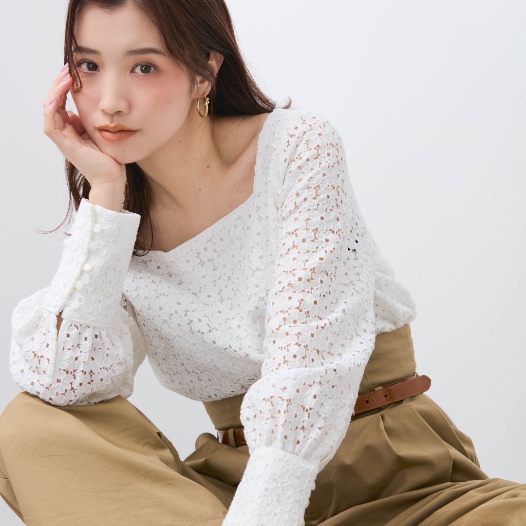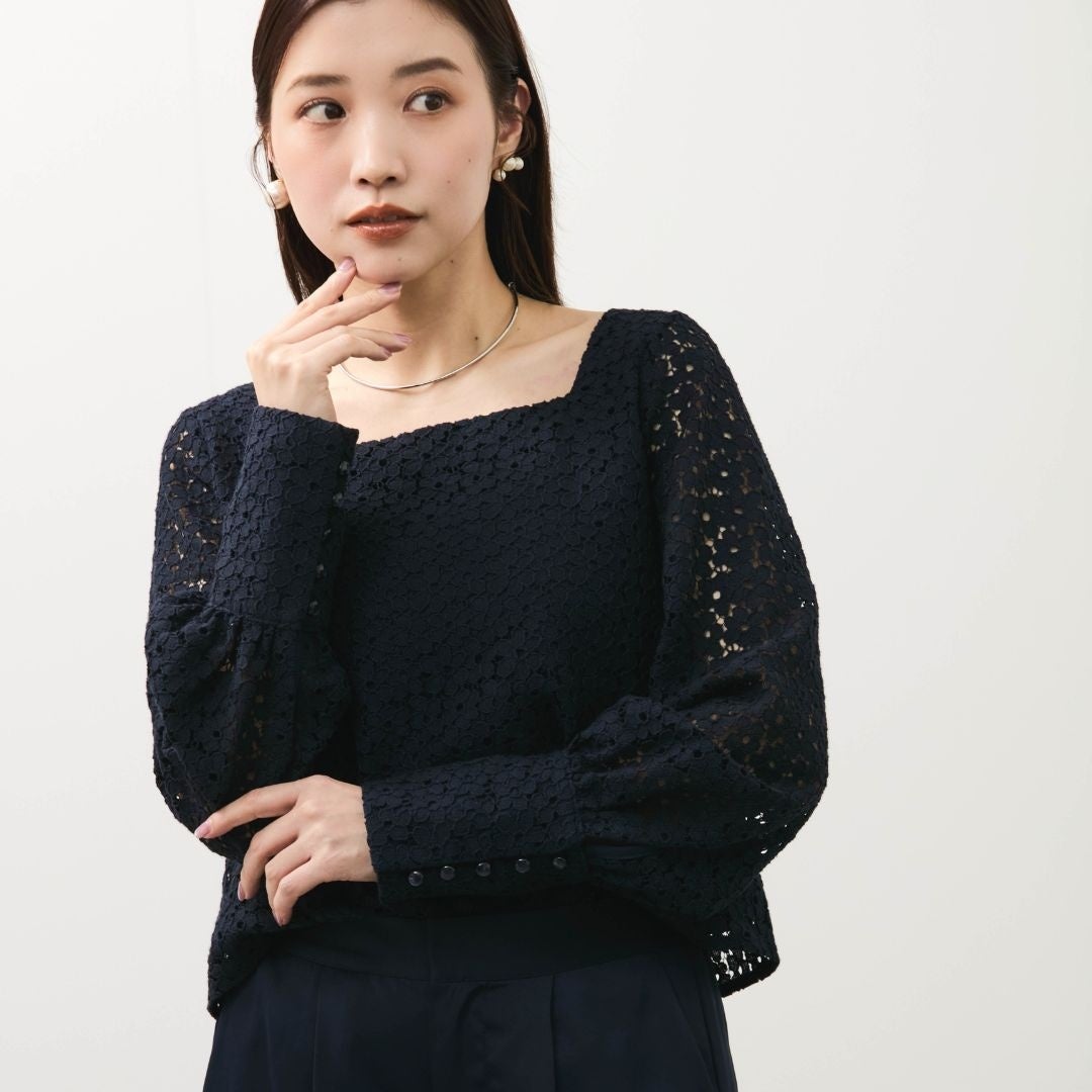 アネモネ柄レースが魅力のスクエアネックブラウス