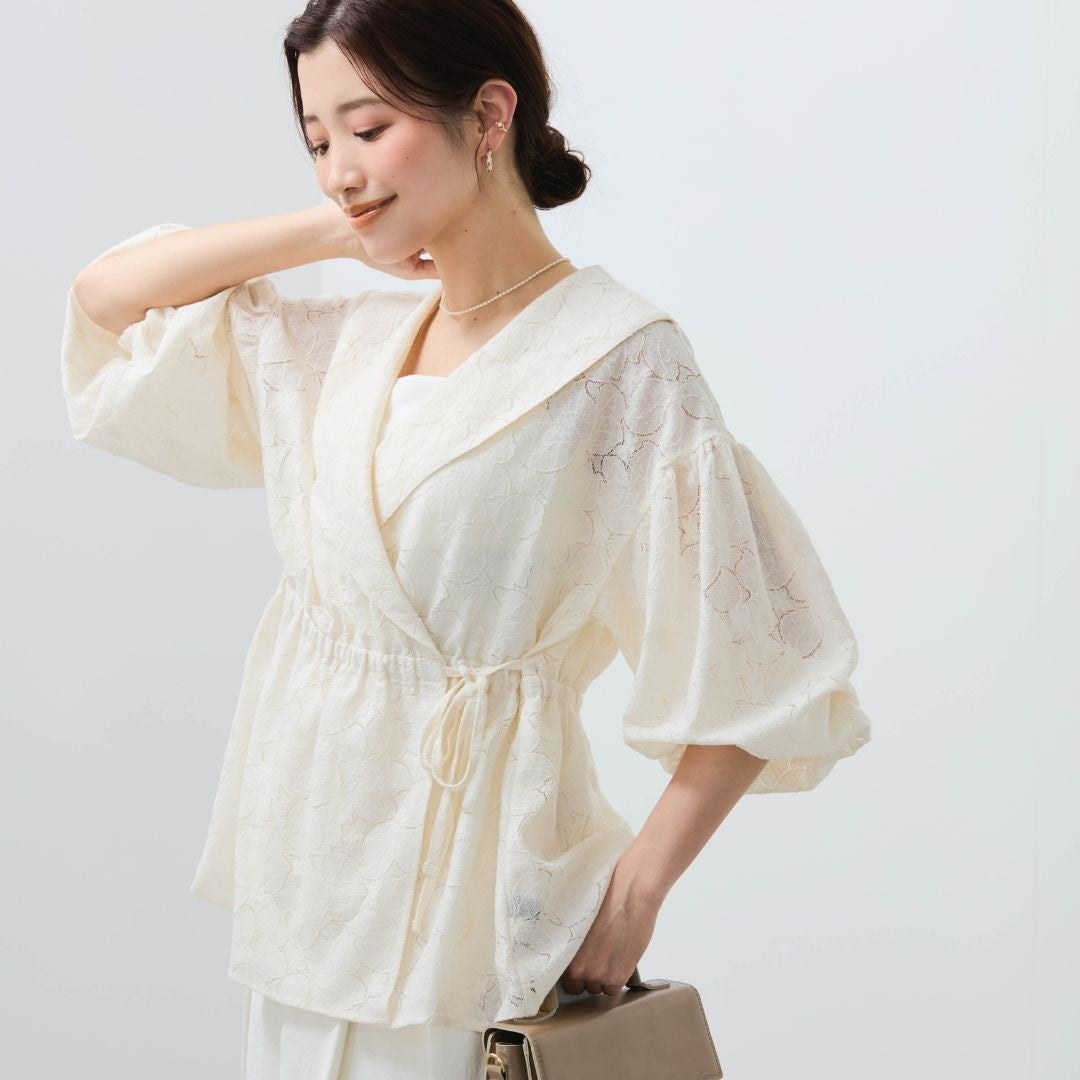 カシュクールレースブラウスの魅力は、甘すぎず、きちんと感のある「計算された抜け感」