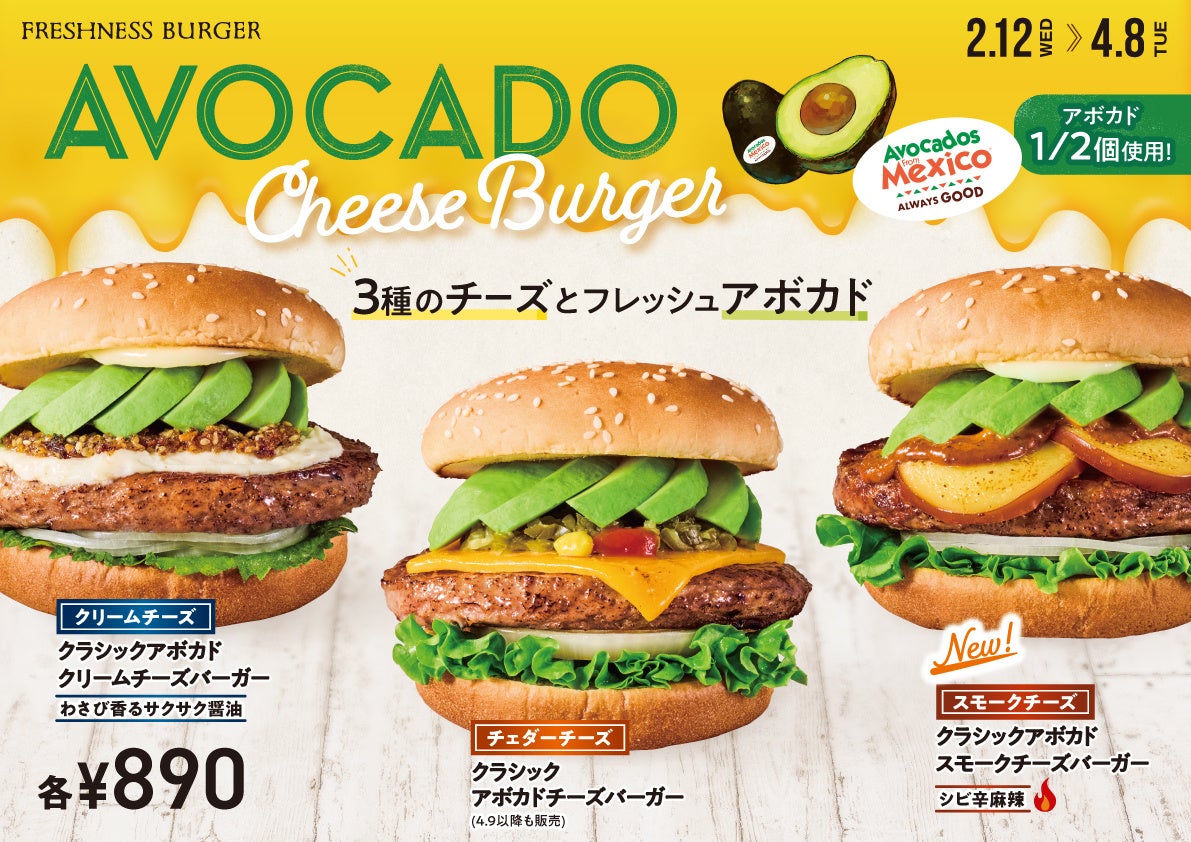 新商品「クラシックアボカドスモークチーズバーガー~シビ辛麻辣~」を含む3種のアボカドチーズバーガー 2025 年 2 月 12 日(水)~4 月8日(火)までの期間限定
