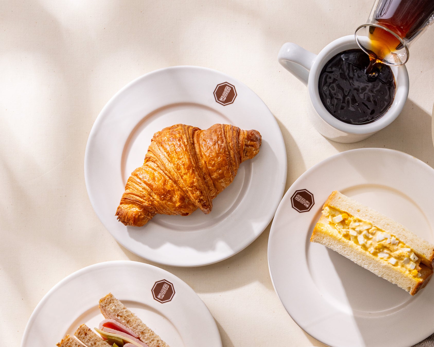 ワンコインで楽しめる「クロワッサンとコーヒーのセット」をご用意。芳醇な国産発酵バターを使用したクロワッサンは、外はサクッと香ばしく、中はふんわりとした食感をお楽しみいただけます。