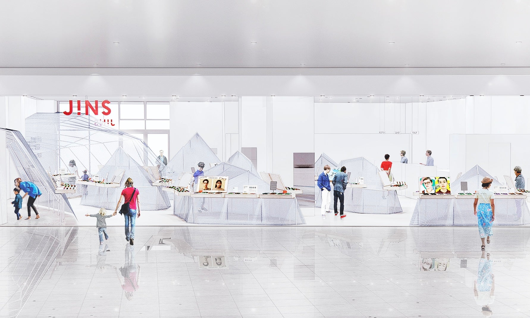 雲の中を巡る店舗空間と豊富な品揃えで、お客様とメガネとの新たな出会いをサポートします。