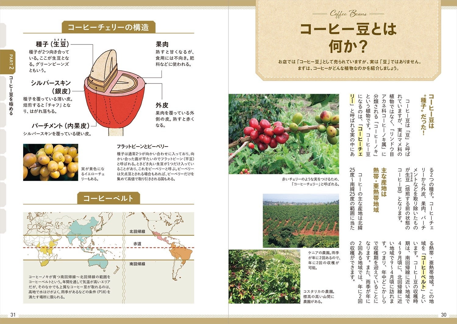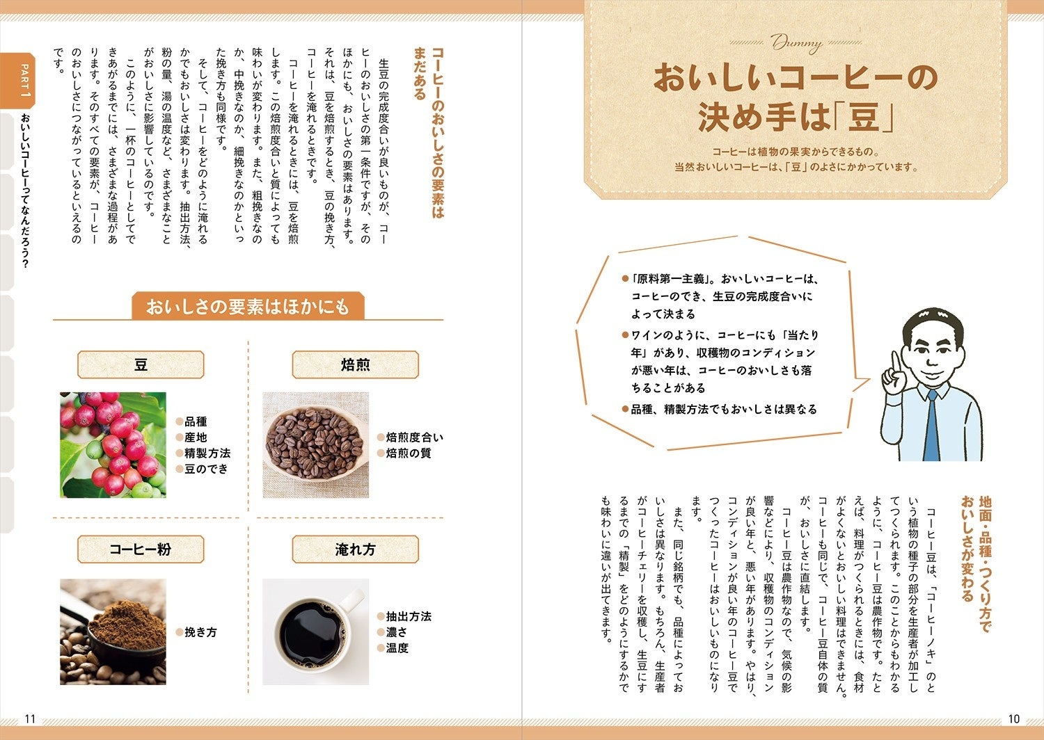 コーヒー豆の品種の特徴、焙煎方法、基本のおいしい淹れ方からビジネスシーンで役立つ教養知識まで網羅しているので、「コーヒーを趣味にしたいけど何から始めたらいいかわからない」「知識も実用的な情報も知りたい」という方にぴったりです。