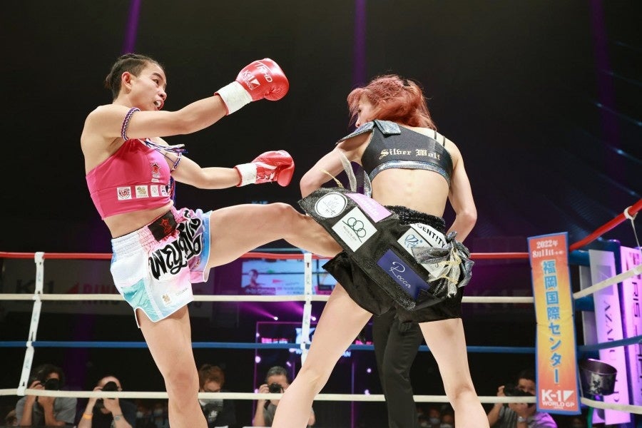 「BLACKPINK」のメンバーであるLISAの従姉妹であり、19歳ながら79戦のキャリアを誇り、ムエタイ世界王座(WPMF世界女子ピン級王座)も獲得するタイのパヤーフォンが一回戦でMIOを下し、松谷を下した菅原が決勝で激突。試合は延長戦までもつれる接戦となり、菅原を振り切ったパヤーフォンが初代王座の栄光を掴みました。