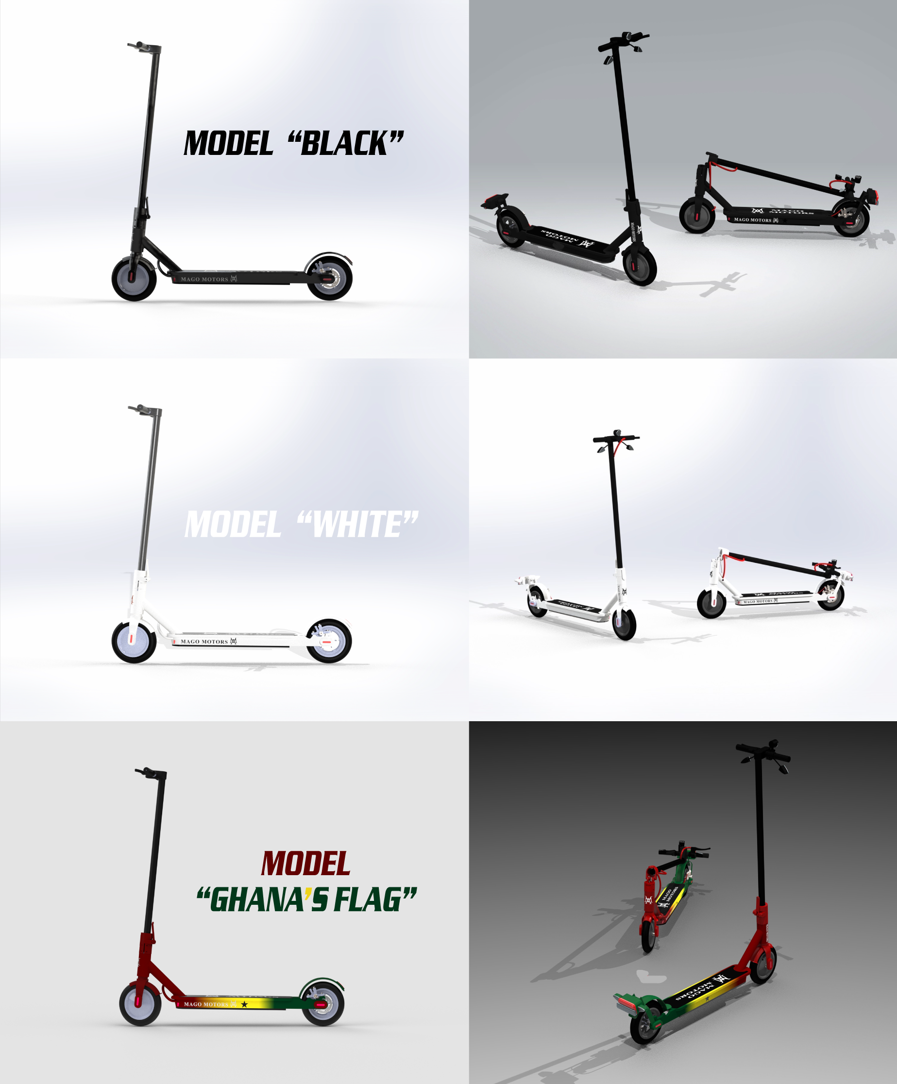 MAGO MOTORS JAPANが依頼したガーナ人デザイナーがデザインを手がけ、品質とデザイン性、そして本事業の売上がガーナへの事業投資に回され、現地の雇用を創出するといったサステナブル性を兼ね備えた電動キックボードです。