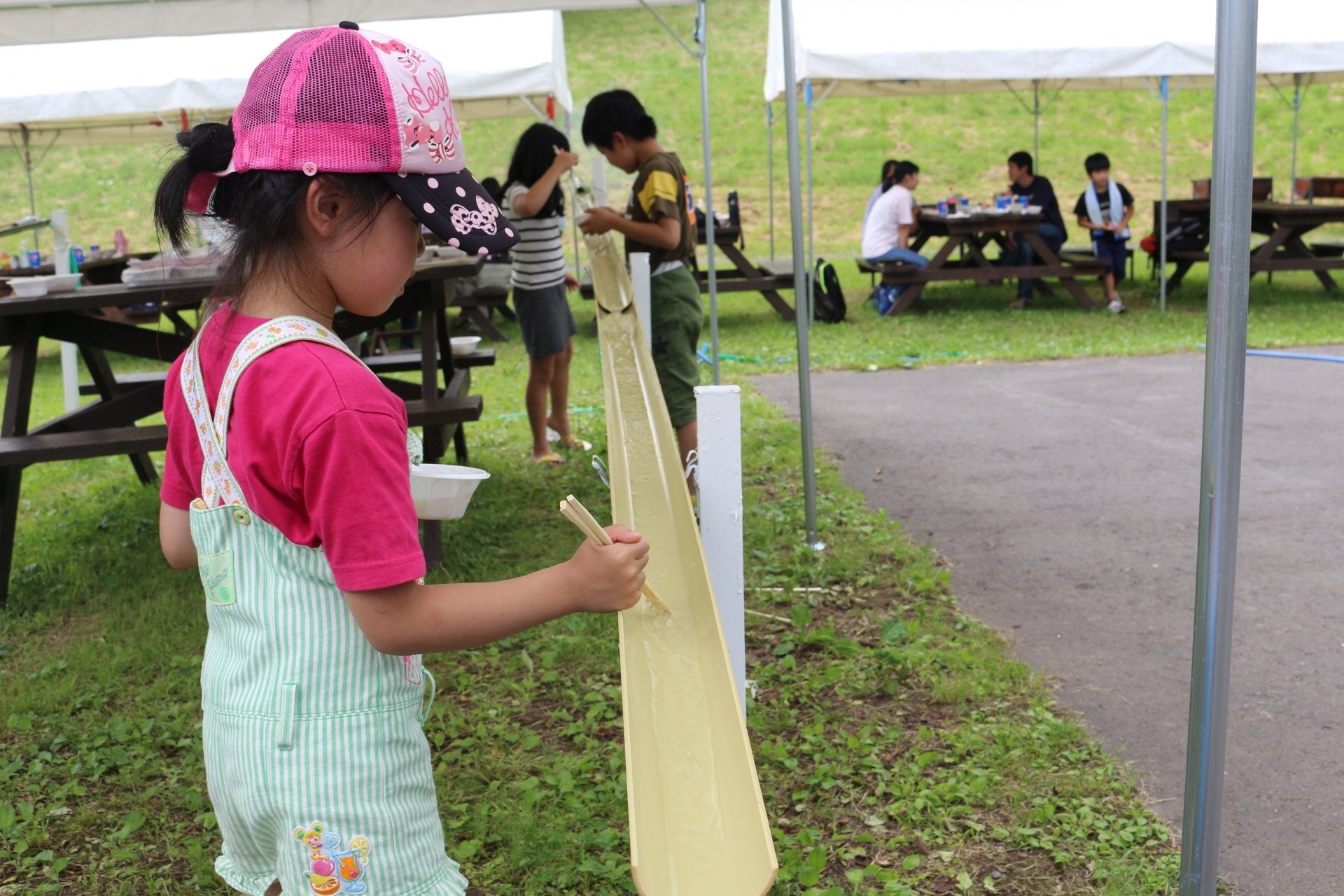 お子様に大人気のふわふわ水遊び広場、流しそうめん、蔵王の清流で育つニジマス釣堀、ゴーカート、