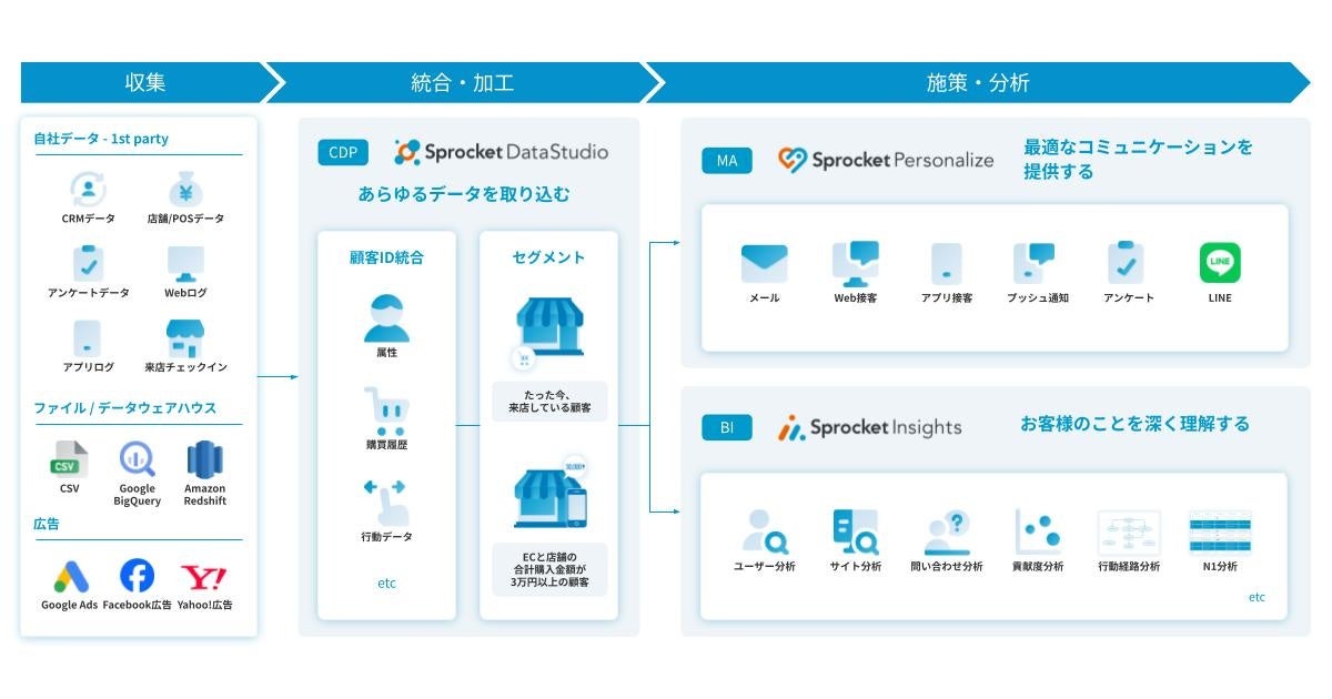 顧客データの収集、統合、加工から、施策の実施と改善までをワンストップで支援