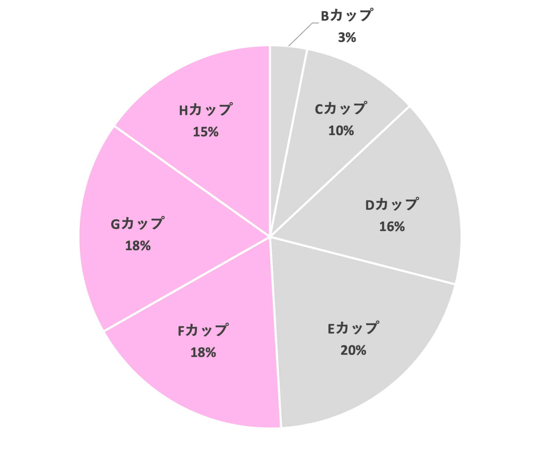 当社では、一般的にFカップ以上とされるグラマーサイズの割合が半数以上を占めており、需要が高い傾向にあります。(2021年10月〜2022年6月 ビスチェリーナ販売実績より)