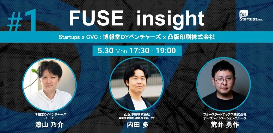 『FUSE insight』#1のテーマは「スタートアップから選ばれるCVC」。昨今のCVC市場は群雄割拠の時代といっても過言ではなく、さまざまな事業会社がスタートアップマーケットに目を向けています。今回は、博報堂DYベンチャーズ社と、凸版印刷社をお招きし、体制づくりやソーシング、スタートアップとの向き合い方などさまざまな角度からお話いただきます。